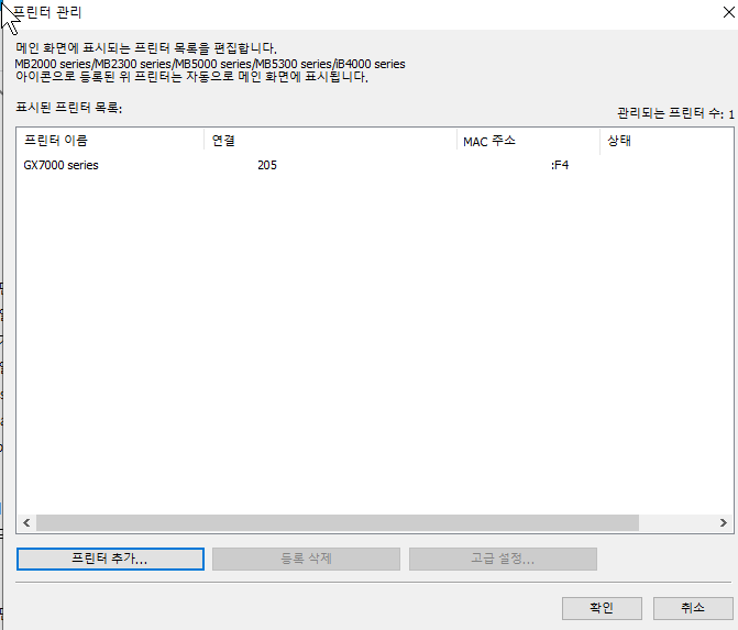 프린터가 추가가 완료 되었다. 확인을 눌러보면
