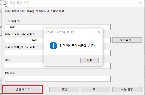 연결 테스트누르면 연결성공이 되면 작업이 끝난다. 확인을 눌러주면
