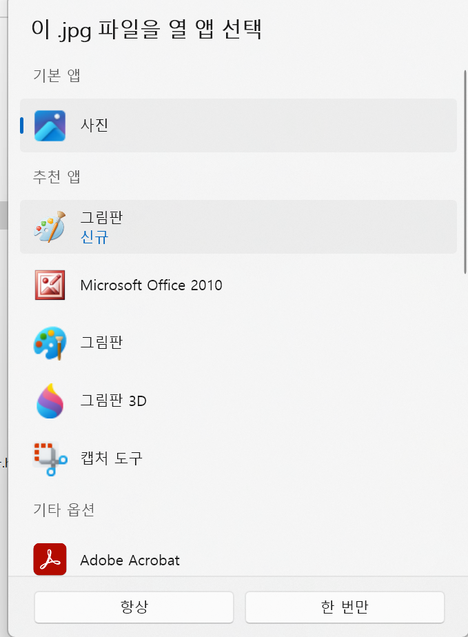 그림판 어떤걸로 열건지 나오는데 신규로 떠 있는 클래식 그림판으로 열면 된다.