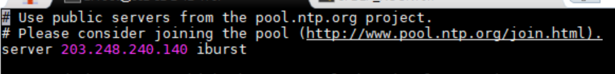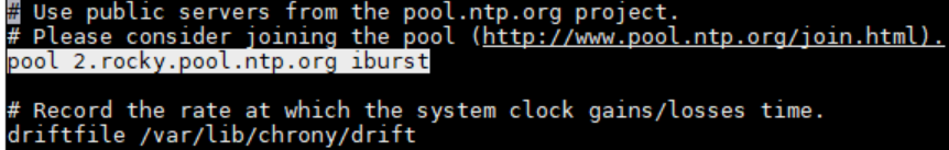 pool 2.rocky.pool.ntp.org iburst --> server time.bora.net iburst 으로 변경해주면 된다.