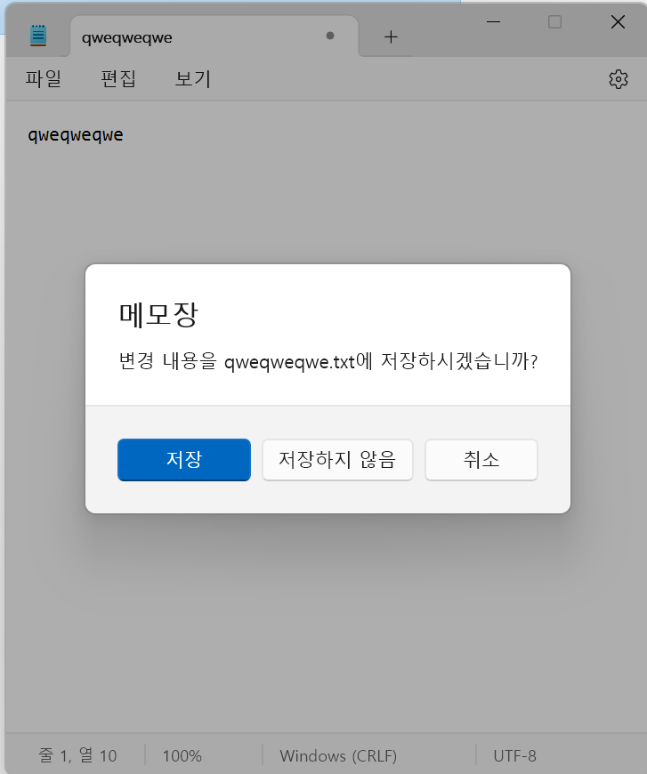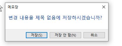 이렇게 저장하겠냐고 물어본것 같은데 이제 안물어보고 메모장이 닫힌다.