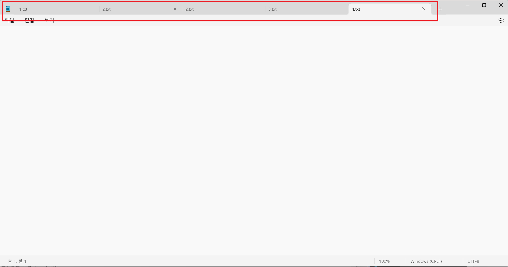 메모장이 크롬처럼 여러개의 탭이 생겼다.