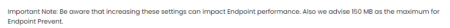 Detection for large-size files not working when IDM rule is chosen. It is desired to detect files indexed with the IDM technology, including files larger than the default 30 MB maximum size, using Endpoint Prevent. However, after creating the required IDM