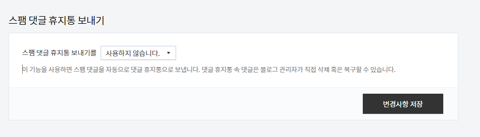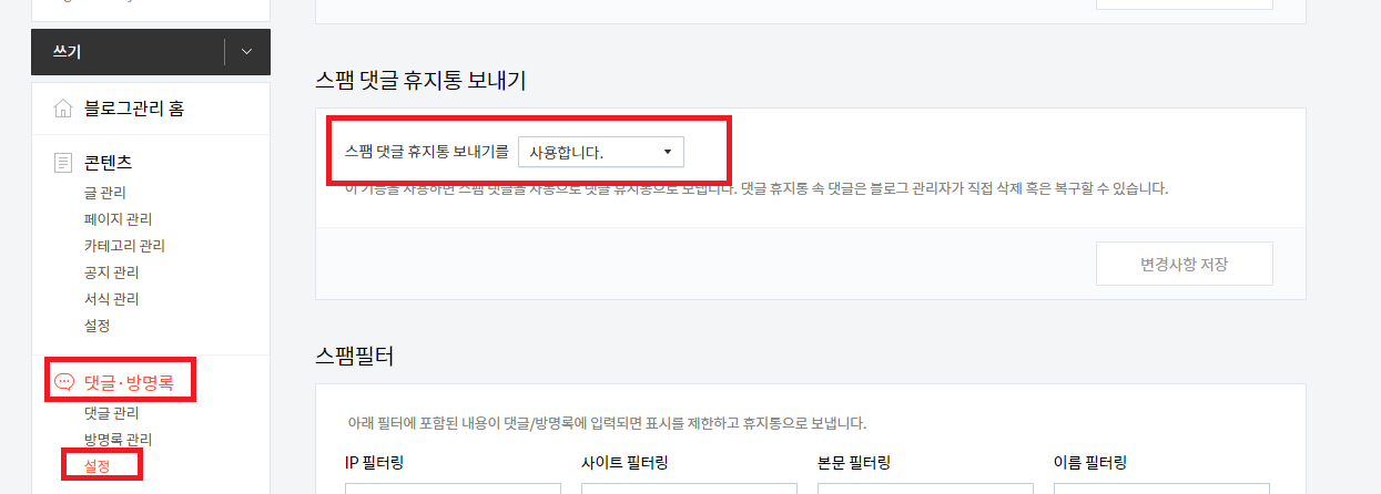 설정에 들어가서 댓글-설정-스팸 댓글 휴지통 보내기를