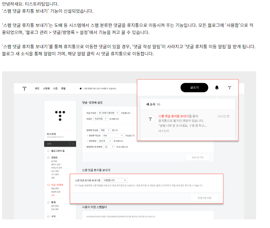 [안내] '스팸 댓글 휴지통 보내기' 기능 신설