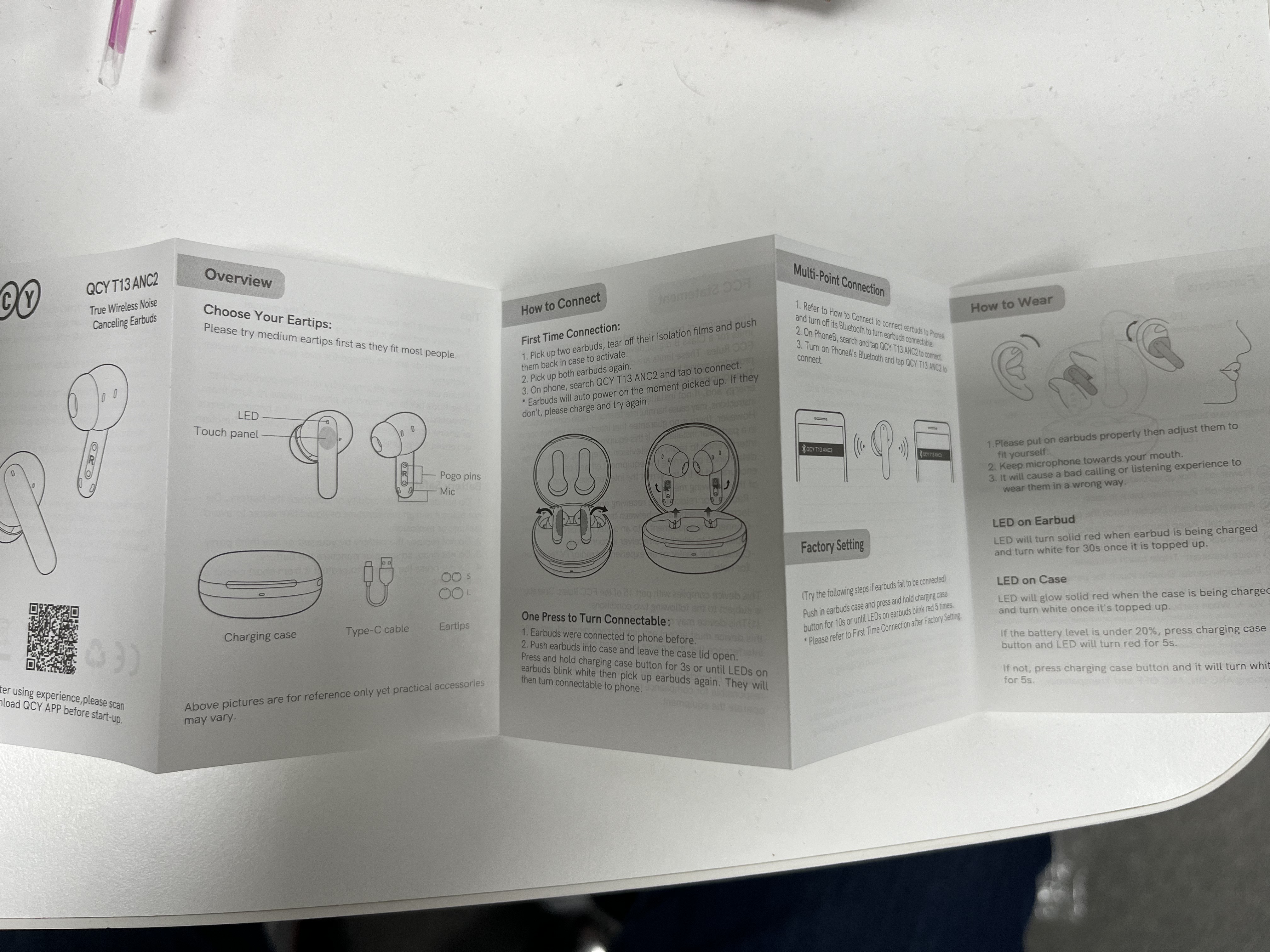 다른 QCY 제품과 달리 모두 영어로 된 메뉴얼이다.