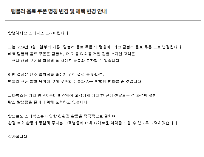 뭔가 거창하게 써 있지만 저것도 결국 무료 음료쿠폰(벤티까지) 가능한 쿠폰이였지만 변경되면서 사이즈 제일작은것만 교환 가능한 쿠폰으로 변경
