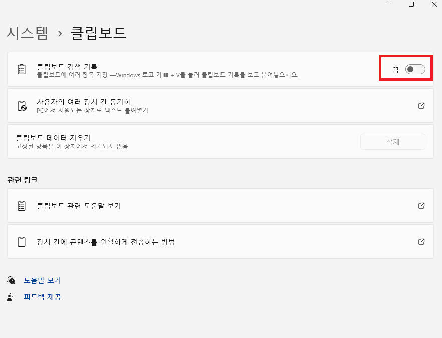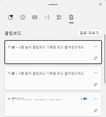 윈도우키를 눌러서 검색어에 클립보드 설정을 치면 나온다.