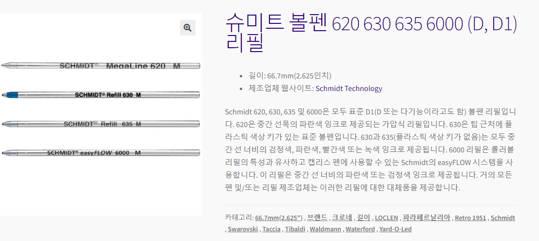 볼펜심이 국제표준이 있고 D1 에 620, 630, 635, 6000 제품이 있다고 한다.