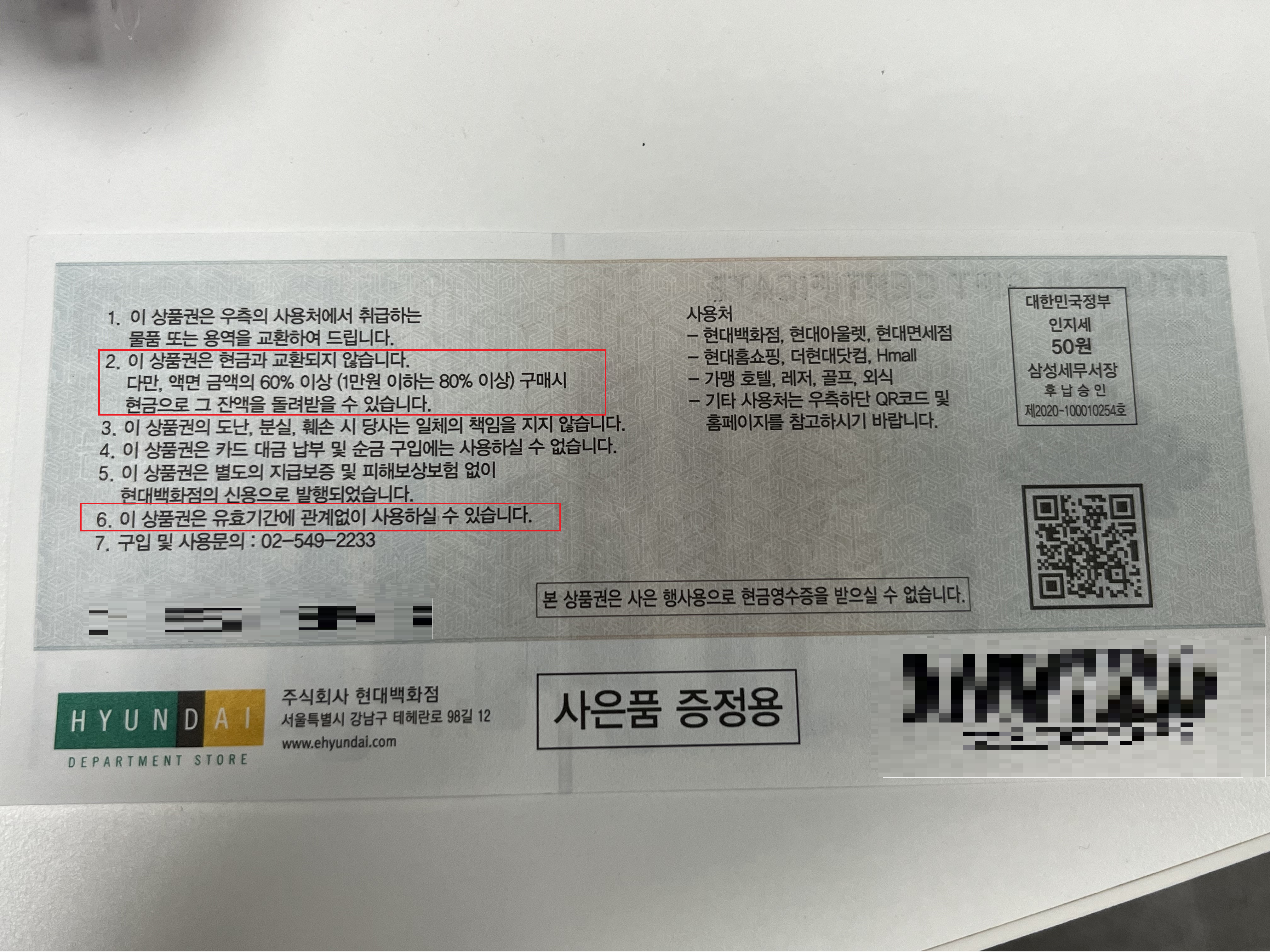 뭐 당연한거지만 굳이 상품권으로 교환을 하기위해서 방문하지 말고 현대백화점 갈일이 있으면 교환 하면 된다.