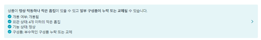 들어가보니 위와 같이 반품 사유가 적혀 있다. 쿠팡 반품상품이 복불복이 심하다고 들은적이 있다. 반품상품이여도 새제품을 받을수도 있고....