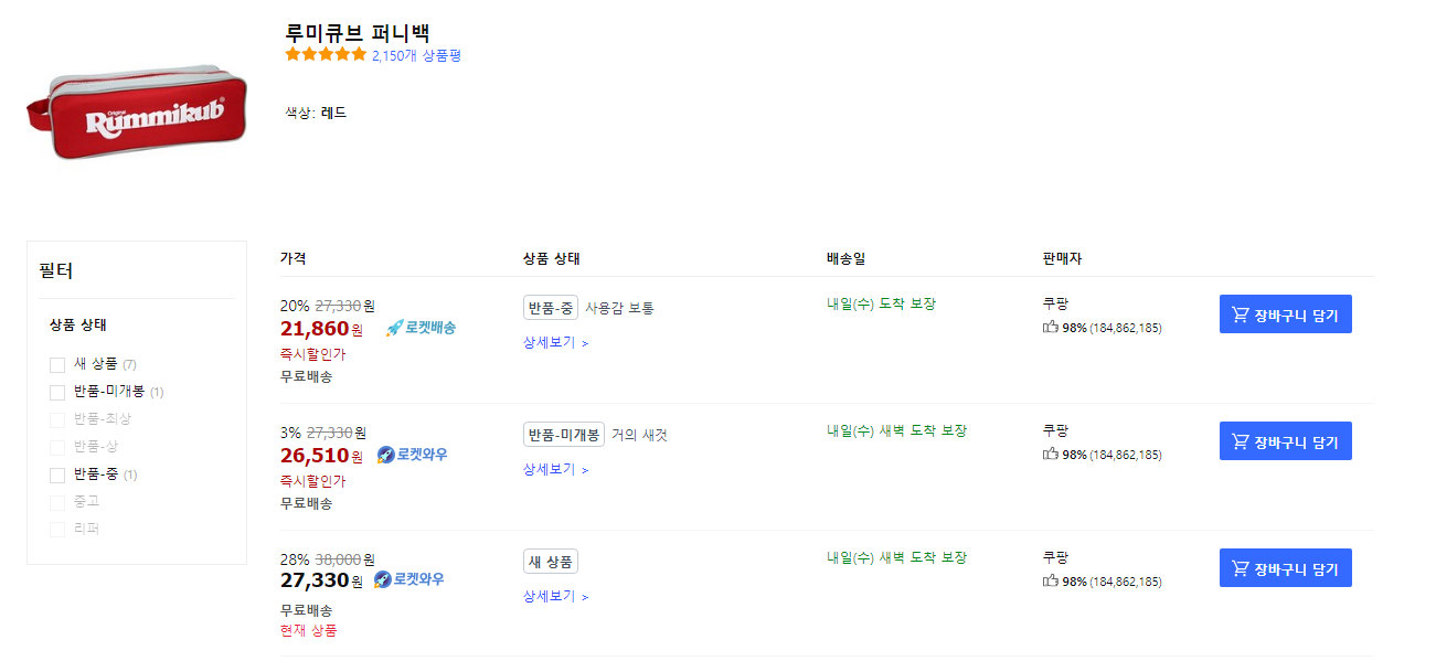 연말에 집에서 보드 게임을 하면서 지내고 싶어서 찾아봤다. 예전부터 루미큐브 라는 게임이 재미있다고 들어서 구매 하기로 했다.