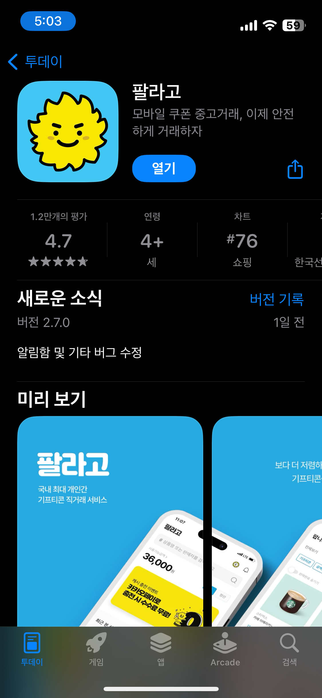 팔라고 어플 설치 하고 가입을 한다음에 보면