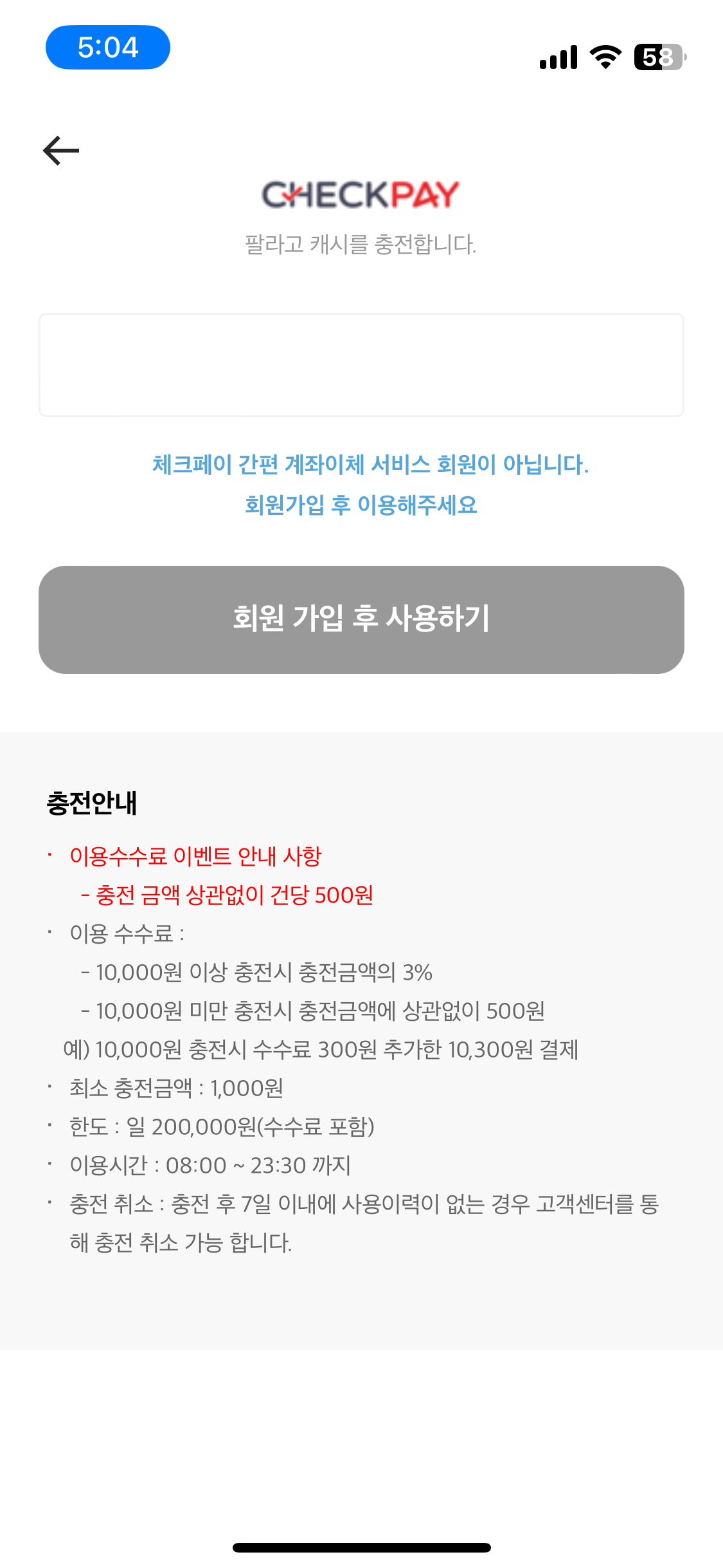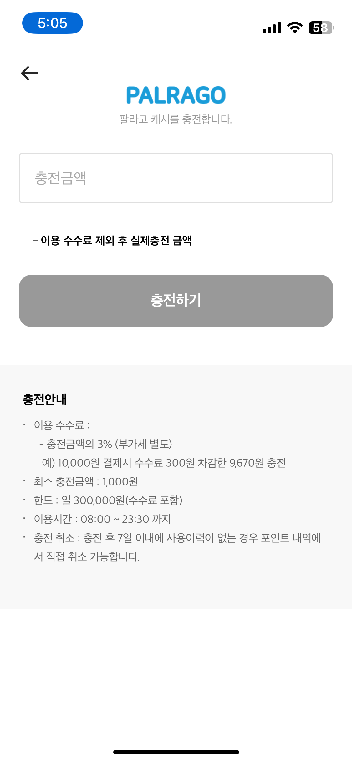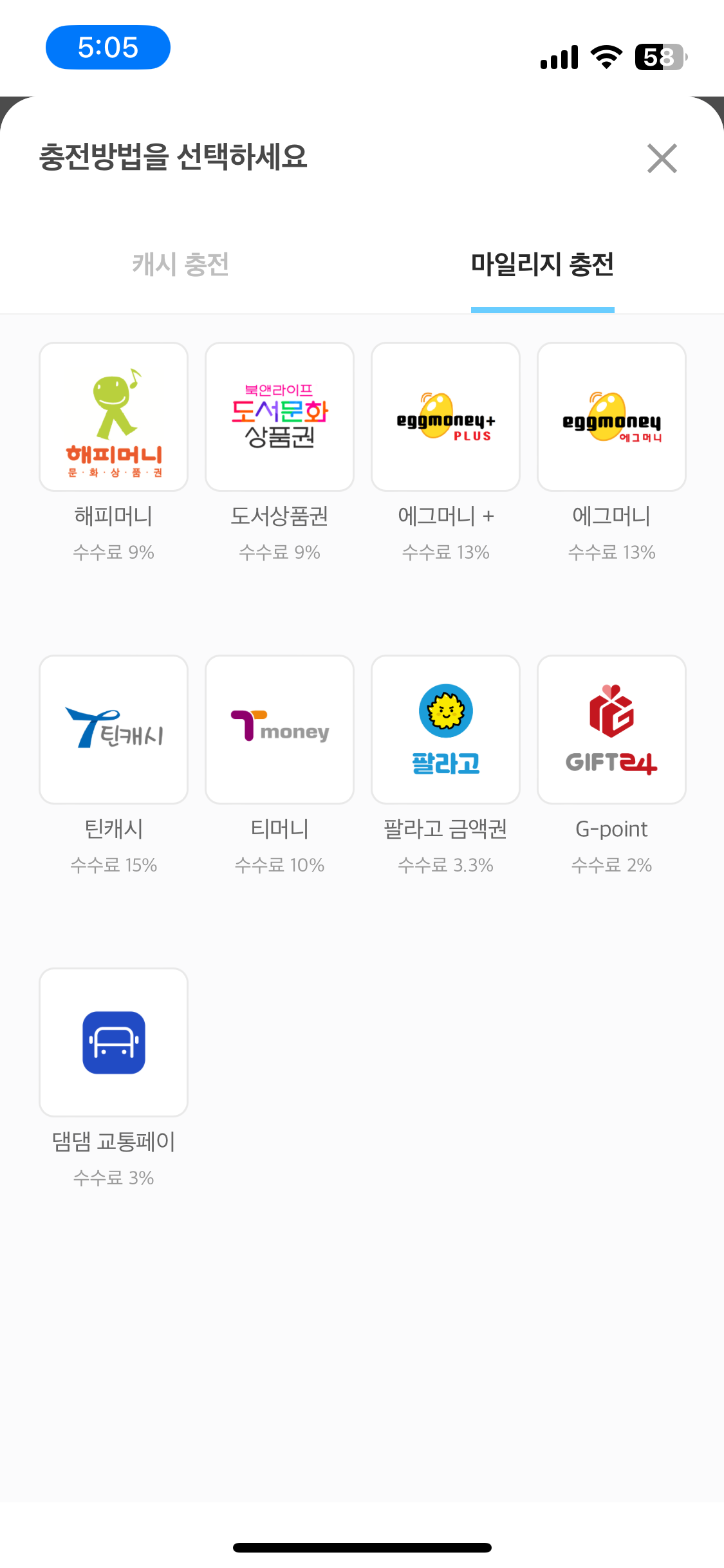 3프로짜리 수수료 충전도 있지만 이것 또한 별로다. 내가 1만원 충전하면 300원을 수수료로 내야 한다.