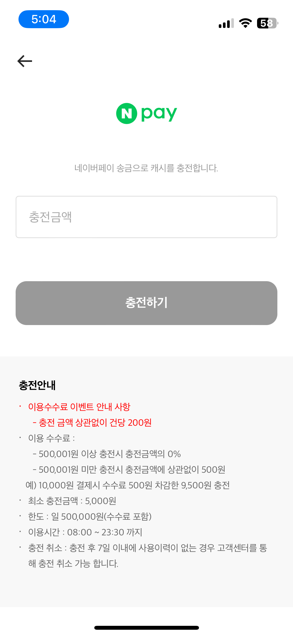 50만원 충전을 해도 수수료가 200원이다 뭐 언제까지 하는 이벤트 인지는 잘 모르겠지만 저렴하게 구매를 하면