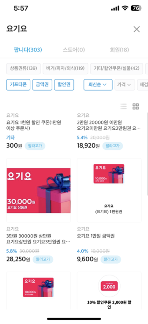 가격이 저렴한 상품권들은 금방 품절이 된다.