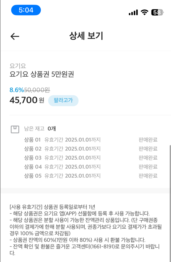 원하는 상품권이 있다면 구매를 하면 되는데 여긴 신기한게 바로 구매가 불가능하다.