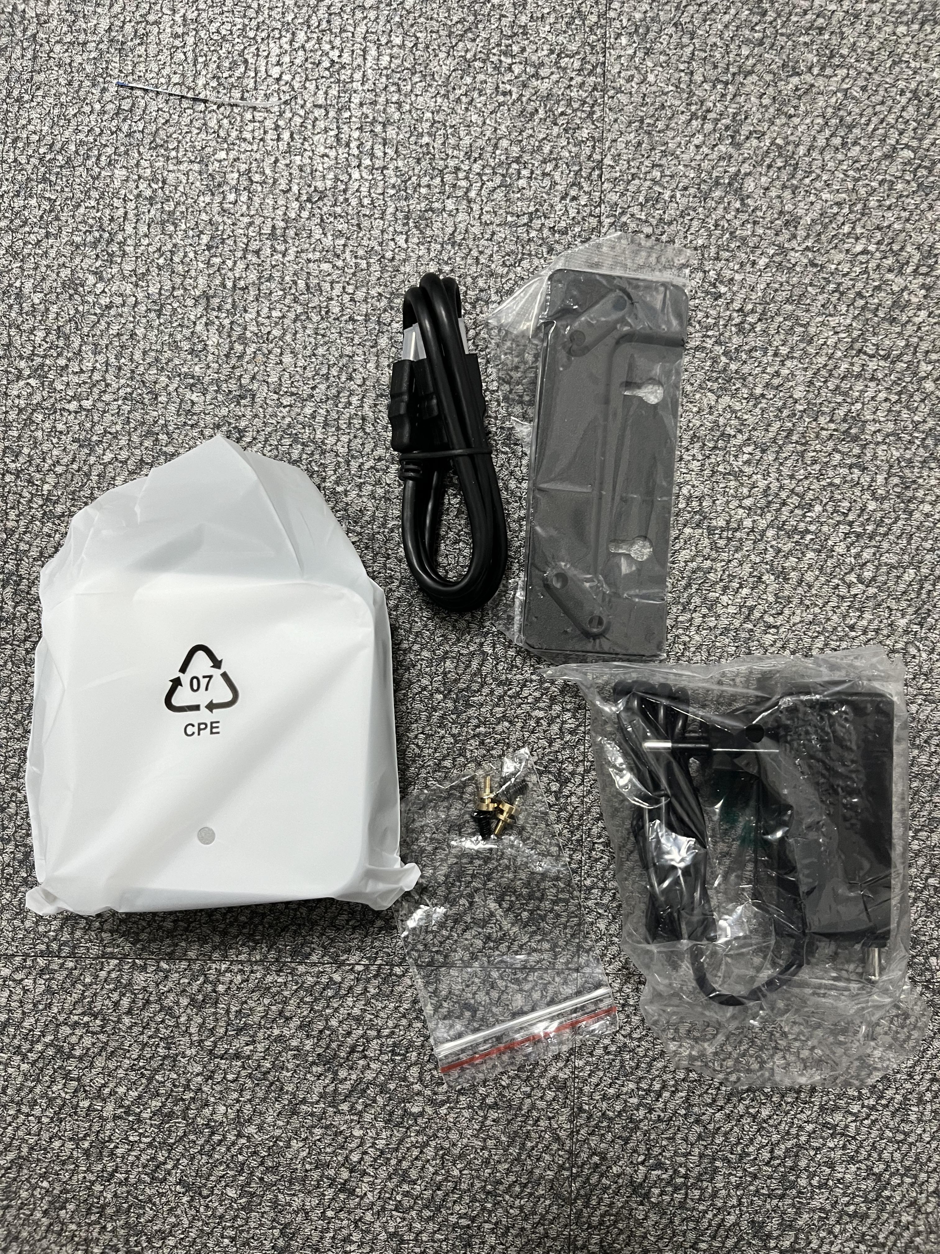 구성품은 간단하다. 본체, 아답터, TV같은곳에 연결하는 브라켓(+나사), DVI 케이블 이 있다.