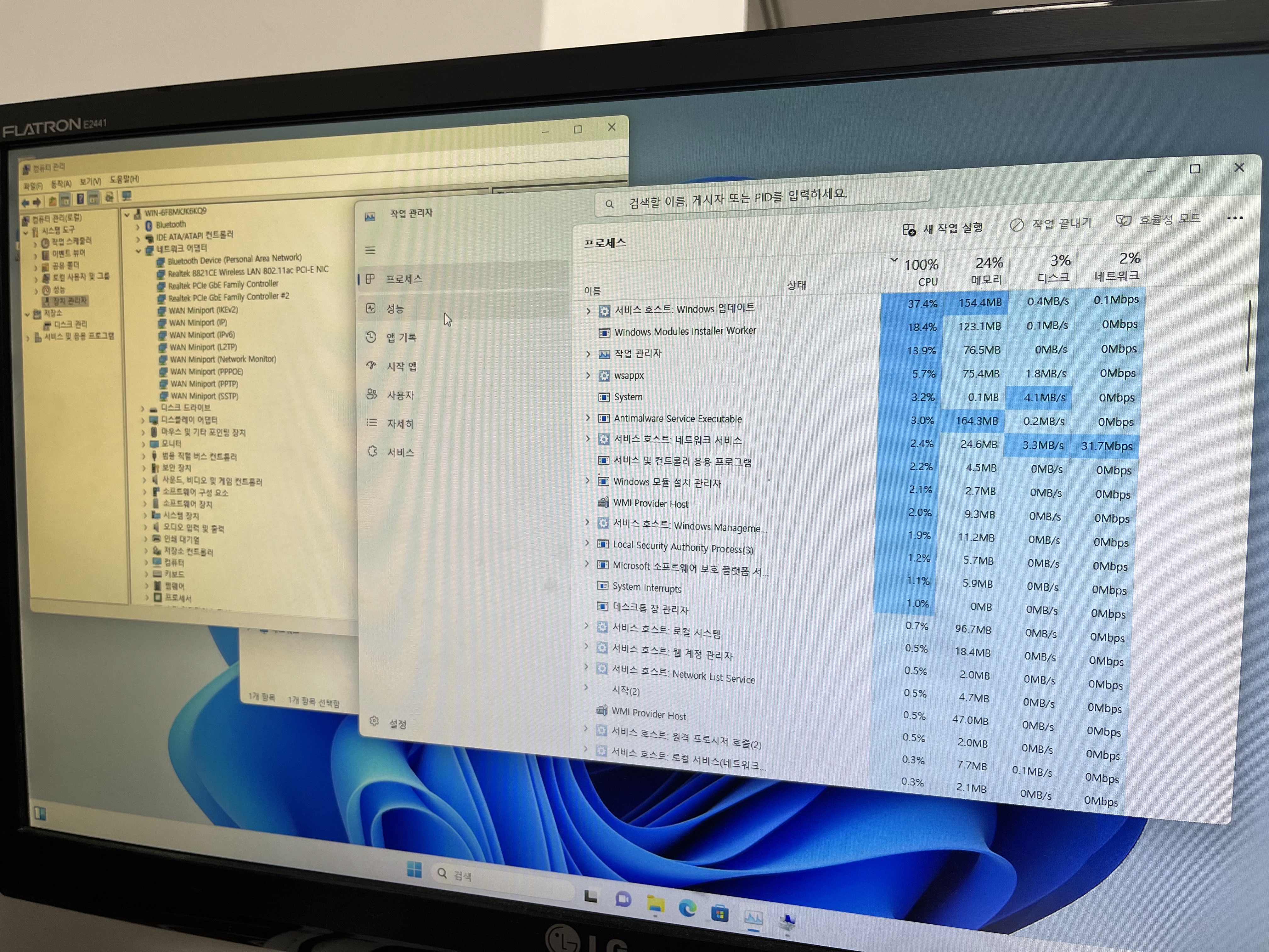 부팅을 하고 네트워크를 잡으니 CPU가 100프로가 된다. 윈도우 업데이트 때문에 CPU를 100%로 잡히다니 CPU가 확실히 느리긴 하다.