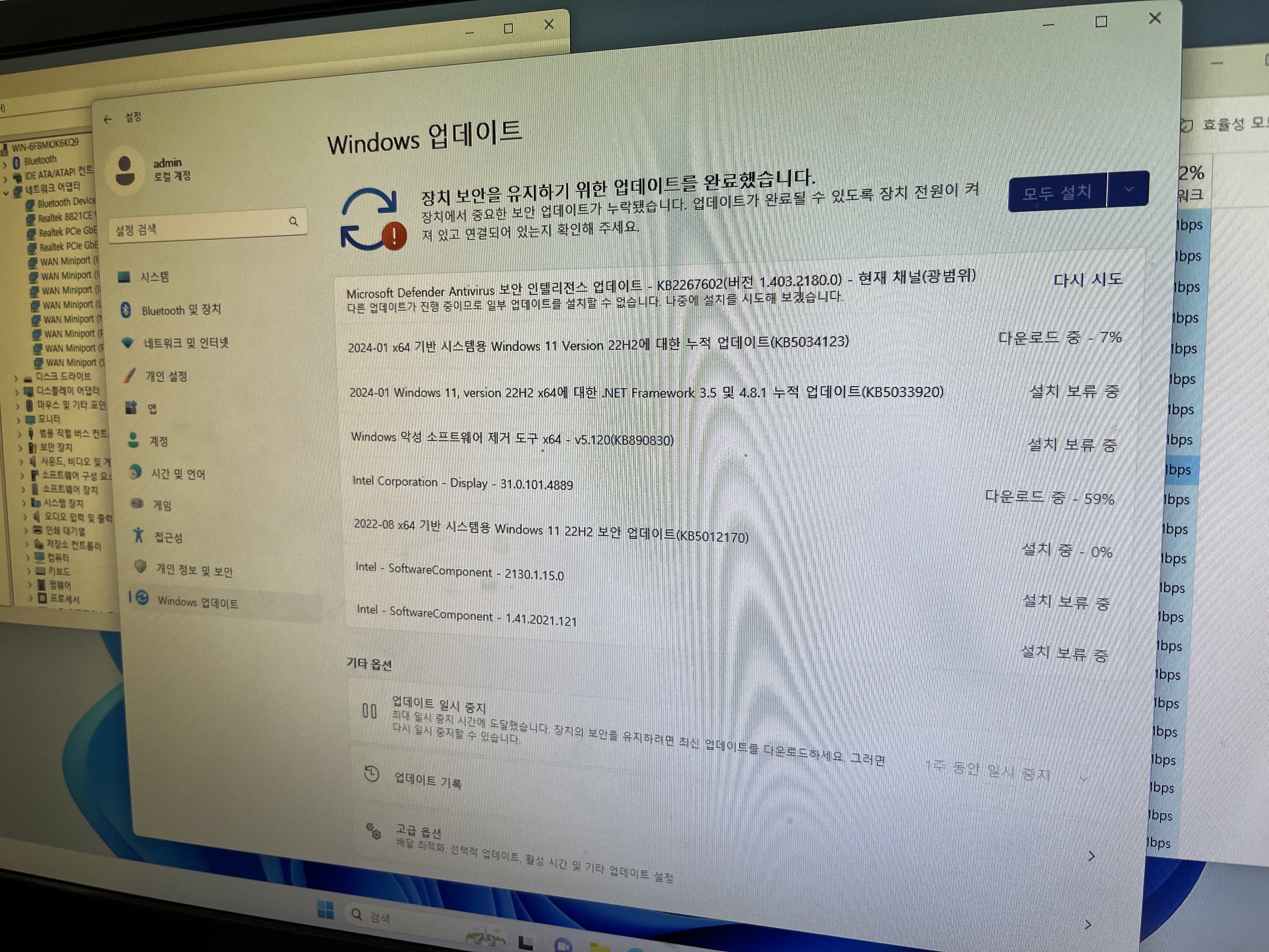 업데이트들이 많다 모두 해주자. 약 1시간 정도 걸려서 업데이트 다 해줬다 그래도 아무것도 안해도 CPU는 20~30% 유지가 된다. 역시 CPU 성능이 아쉽다.