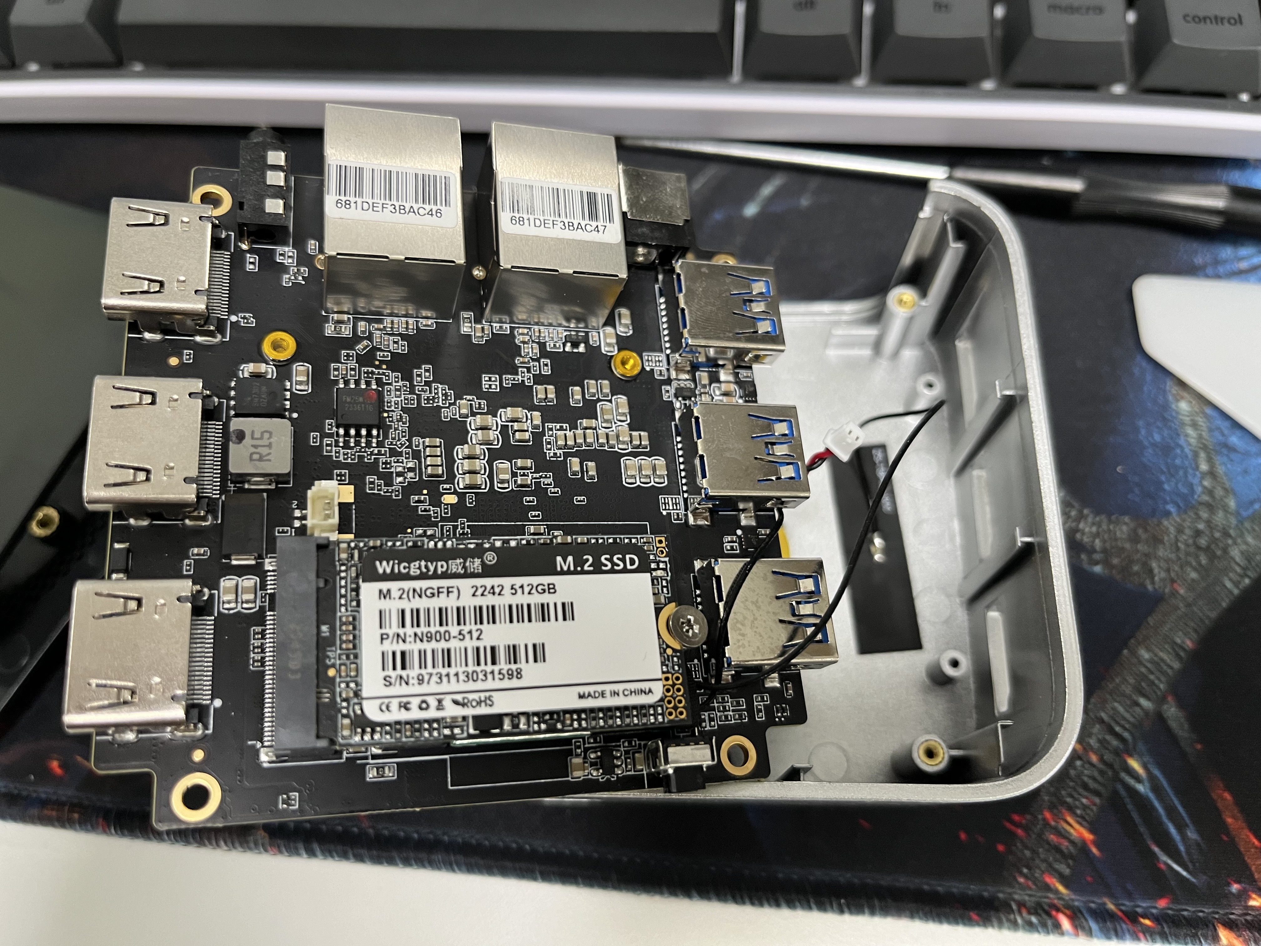 보드는 이렇게 되어 있다. m.2 2242 규격의 하드가 장착되어 있다. 밑에는 아마 wifi 모듈이 있을건데 안뜯어봤다.