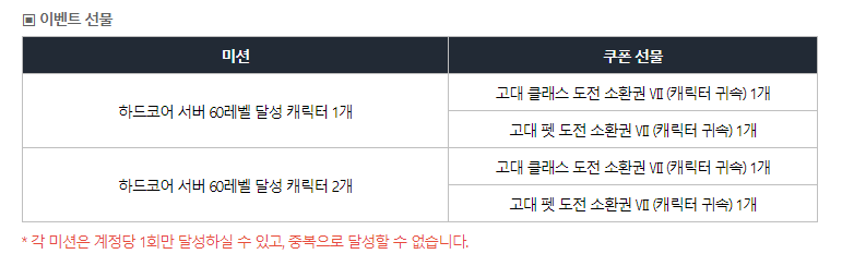 그리고 60레벨 달성시 고대 클래스 도전권도 주어진다.