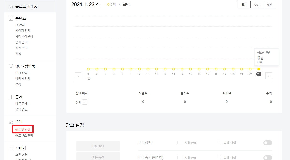 관리 페이지 가서 애드핏 관리에 들어가 아래 보면