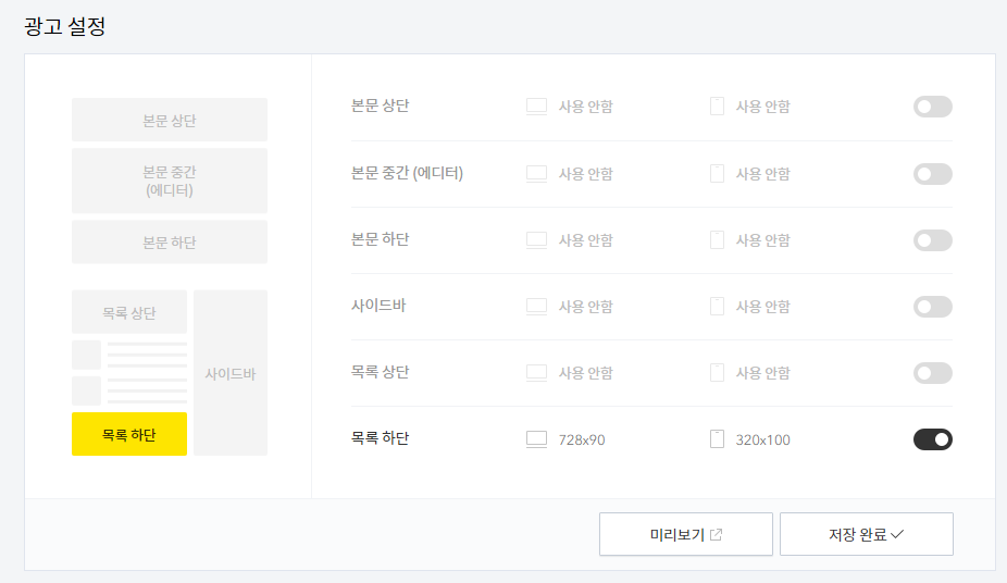 광고를 사용을 안해서 삭제 되면 다시 광고를 못붙인다는건가? 뭐.. 잘은 모르겠지만 불안하니 다시 활성화 해주자.(예전에 카카오 ADFit 이슈때문에 빼버렸었는데...)
