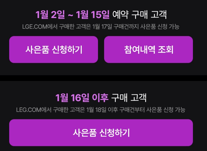 아래 보면 1/16일 이후 구매도 사은품이 있는것 같다. 모두 다 줄꺼면 그냥 같이 보내주지 번거롭게...