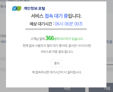 대기자가 많다... 6시간 06분...? 서버가 문제 있는지 예상 시간은 저렇게 떴지만 10분 정도 후에