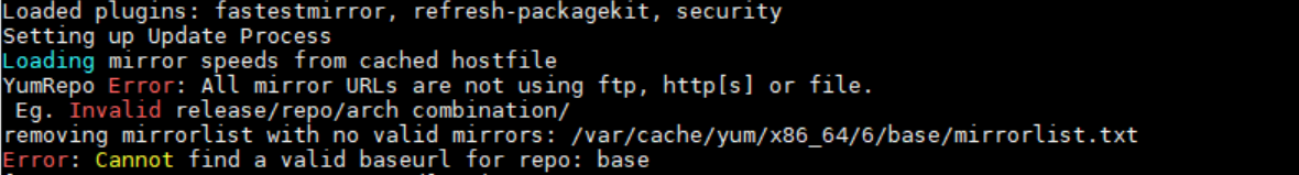 YumRepo Error: All mirror URLs are not using ftp, http[s] or file.