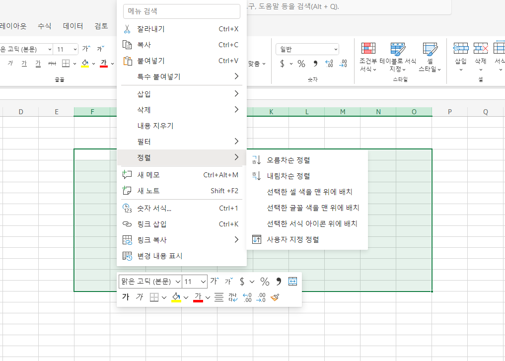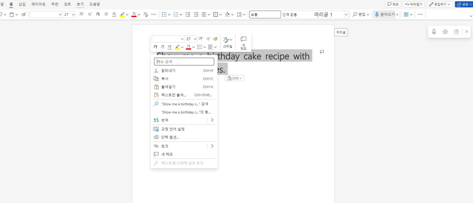 마우스 오른쪽 버튼을 누르면 코파일럿 구동하는 메뉴가 있는데 워드나 엑셀에 없다.