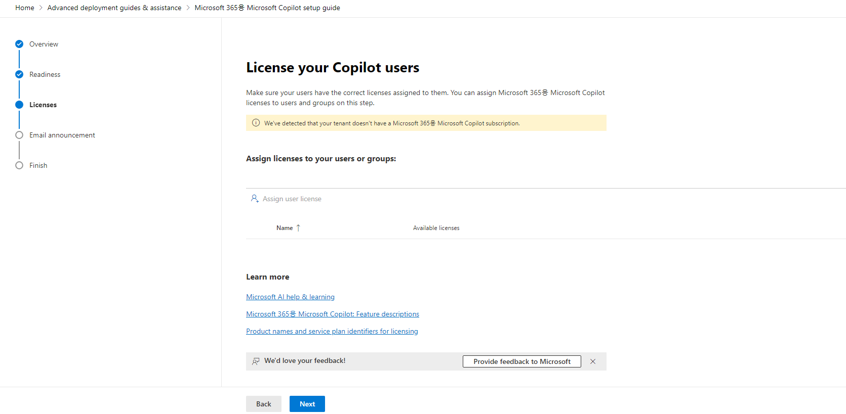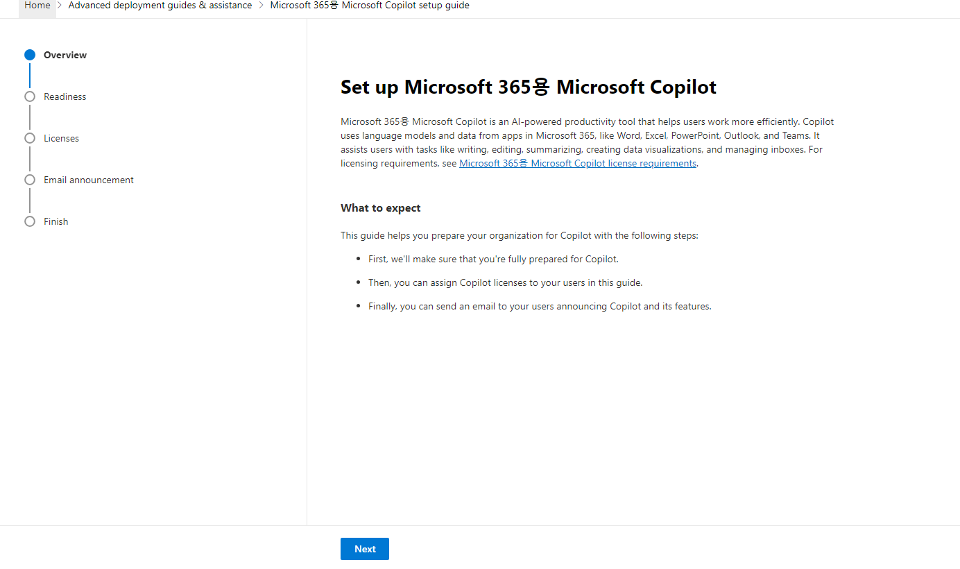 https://admin.microsoft.com/Adminportal/Home?Q=learndocs#/modernonboarding/microsoft365copilotsetupguide