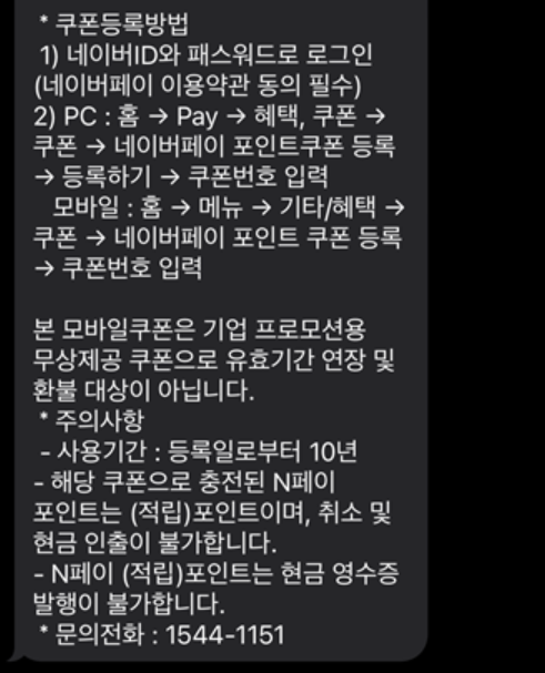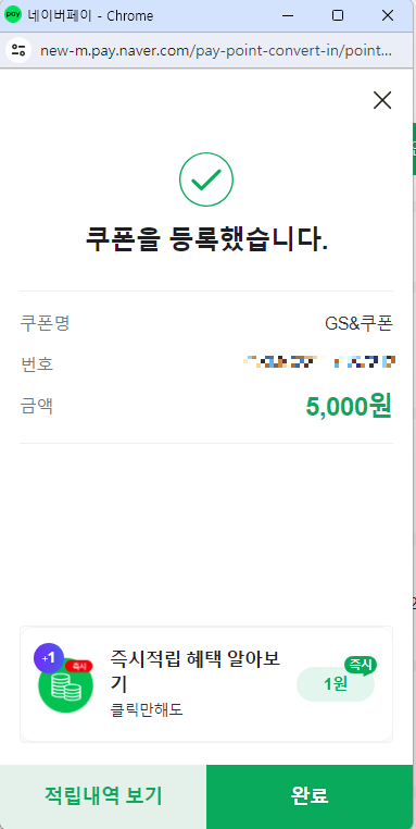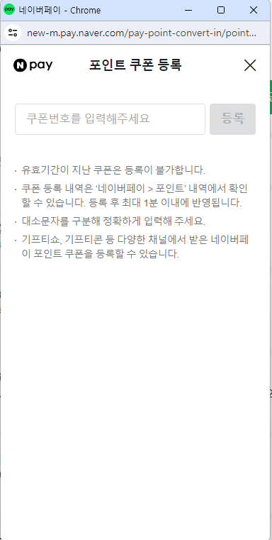입력을 하면 네이버 페이 쿠폰이 정상적으로 등록이 된다.
