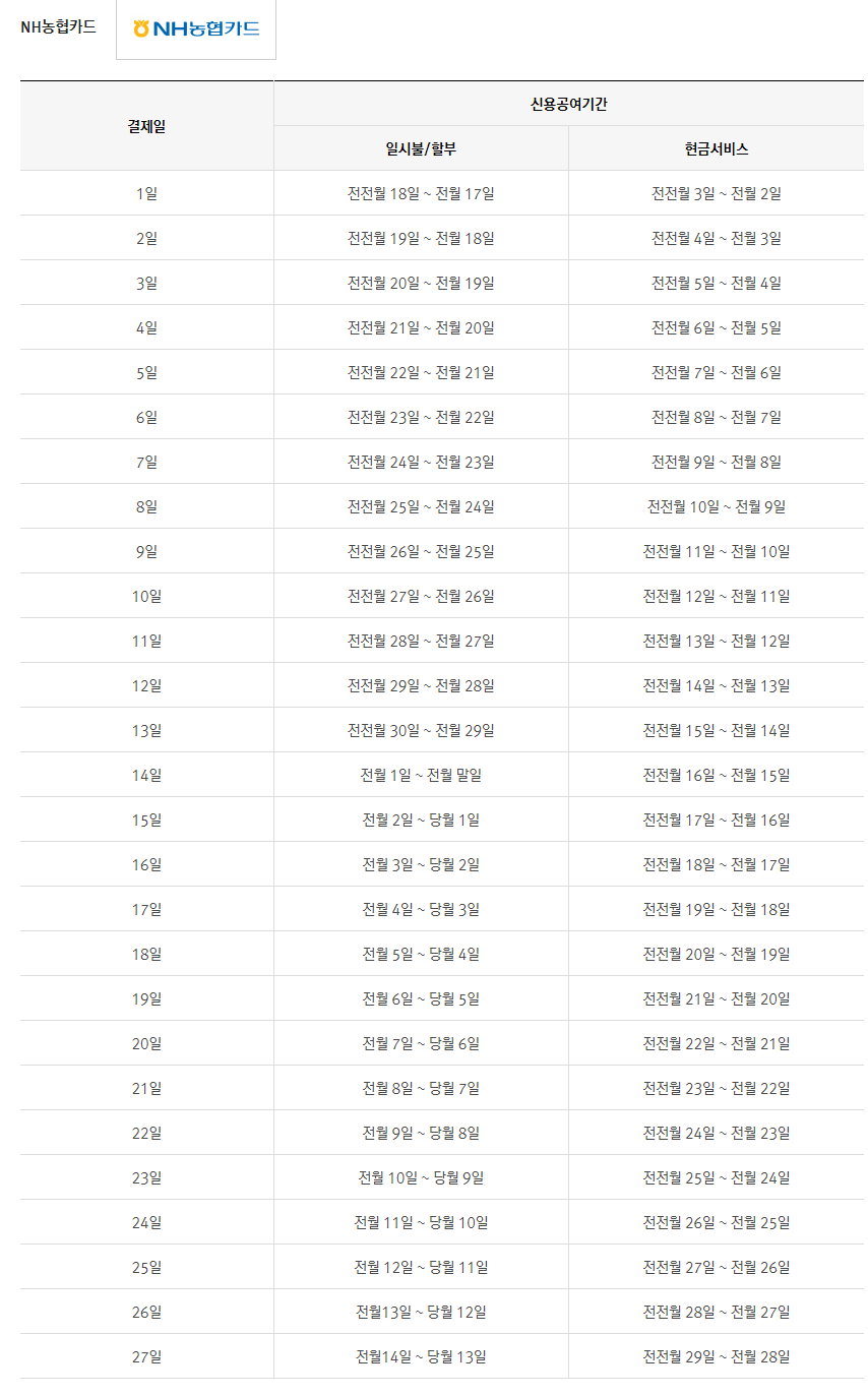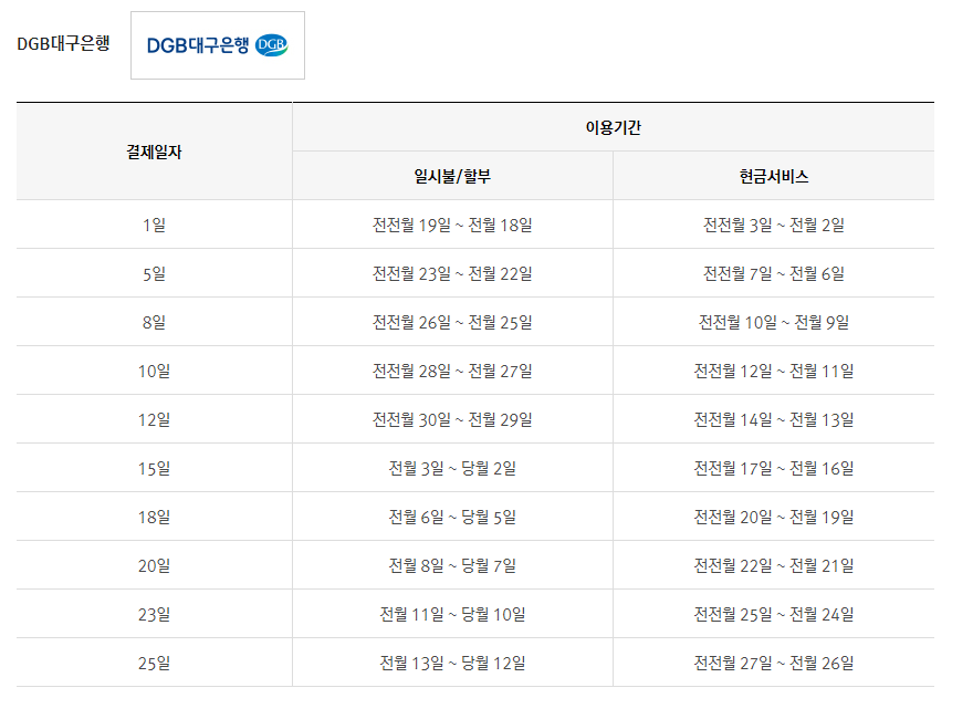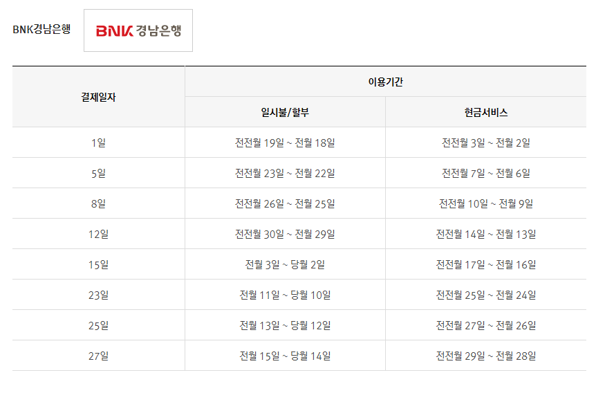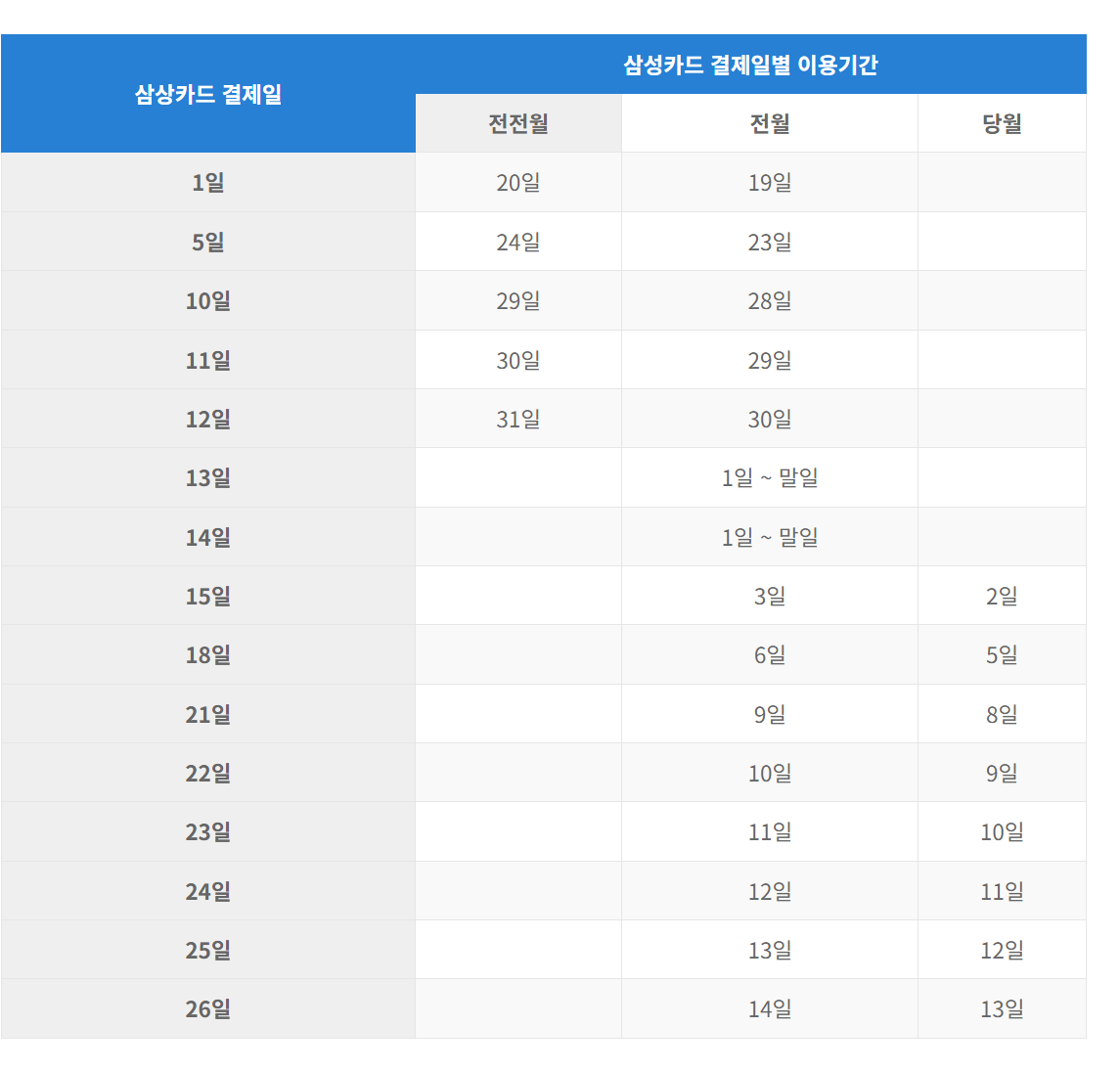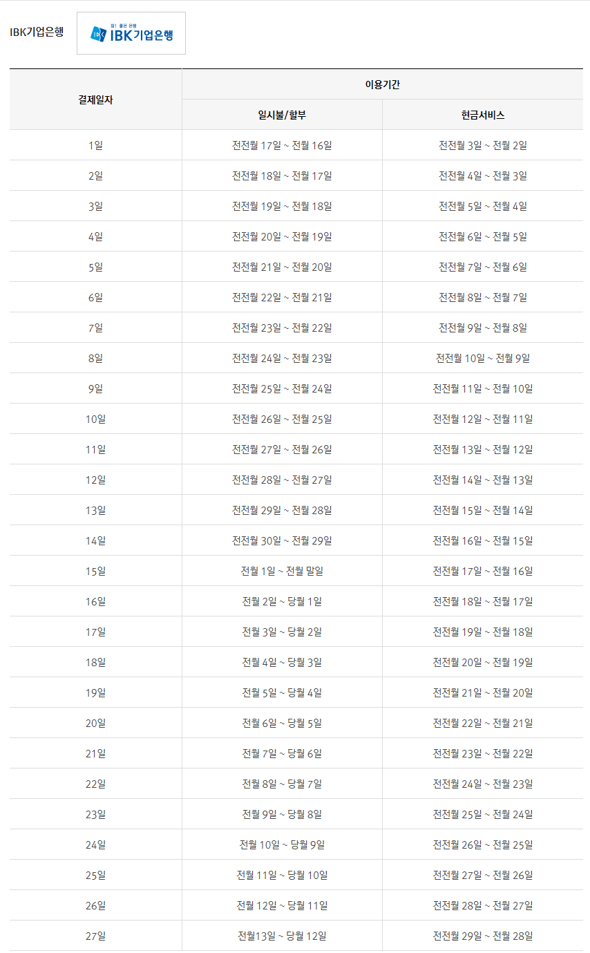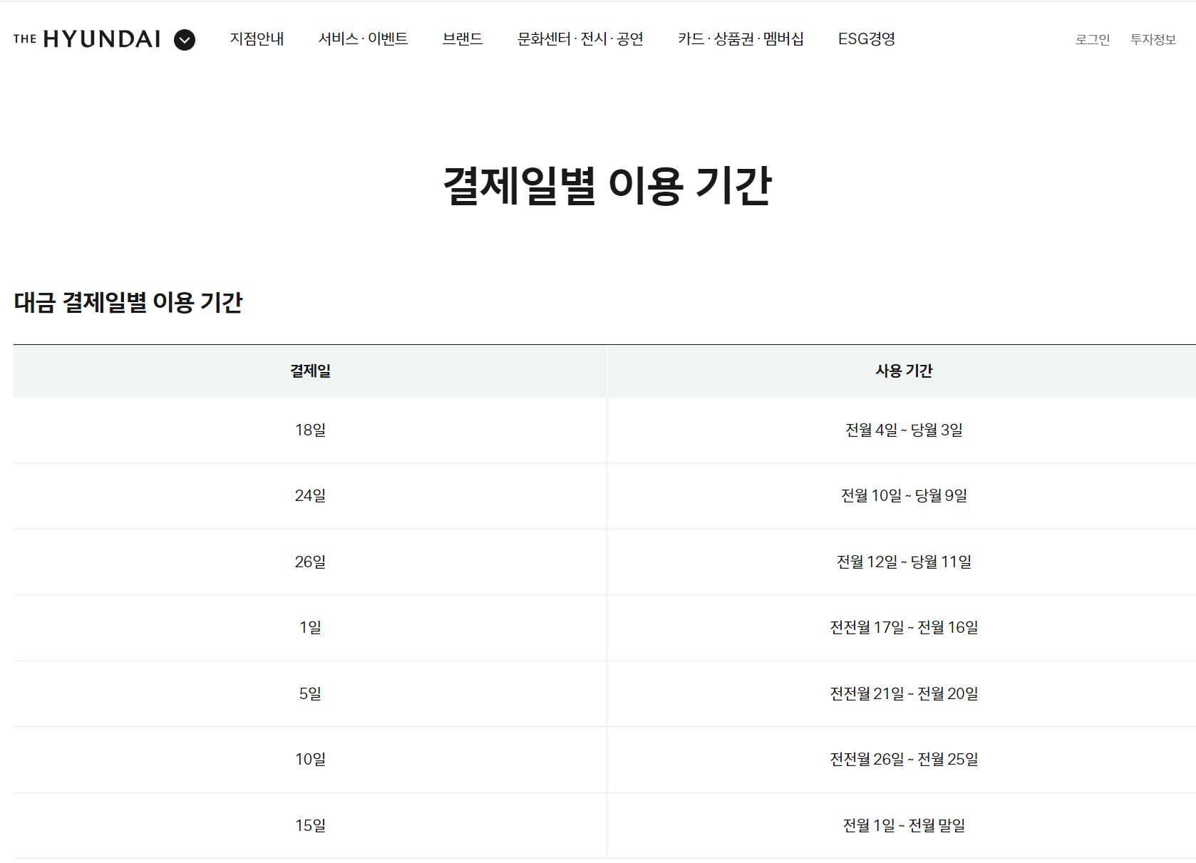 카드 결제일 마다 사용기간이 카드사 마다 다르다. 혜택을 받기 위해 자신의 결제 일자별 사용 기간을 잘 체크해서 사용하자.
