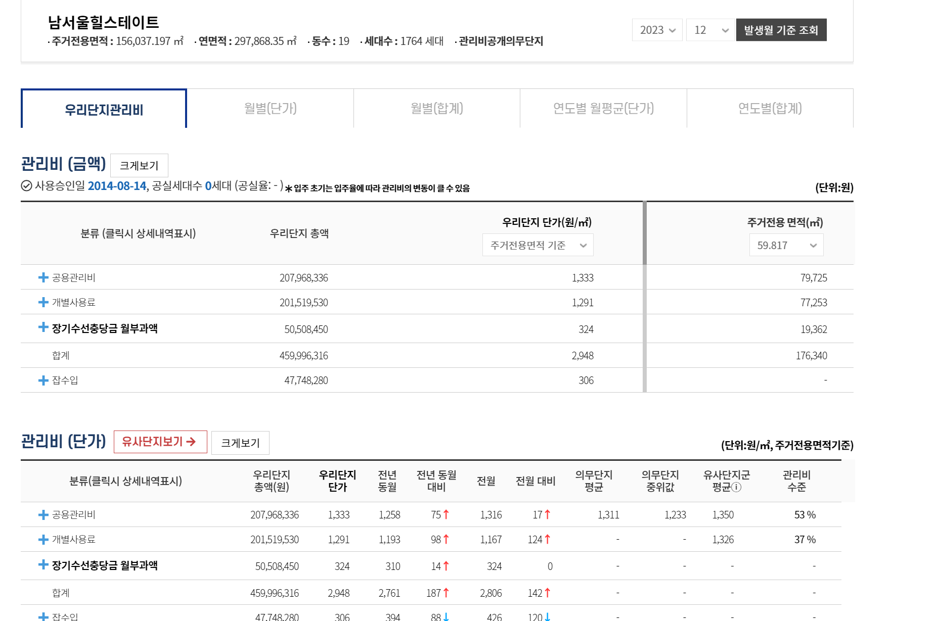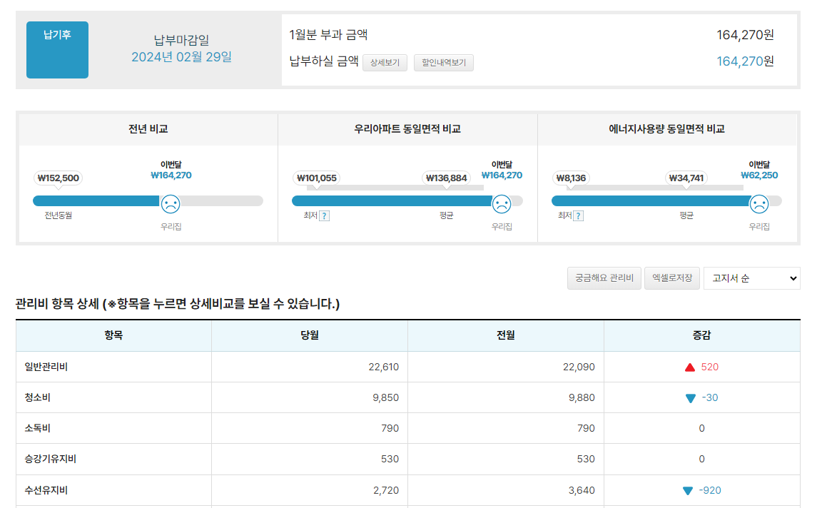 관리비 평균이 나온다. 내 집과 비교해보면 된다.