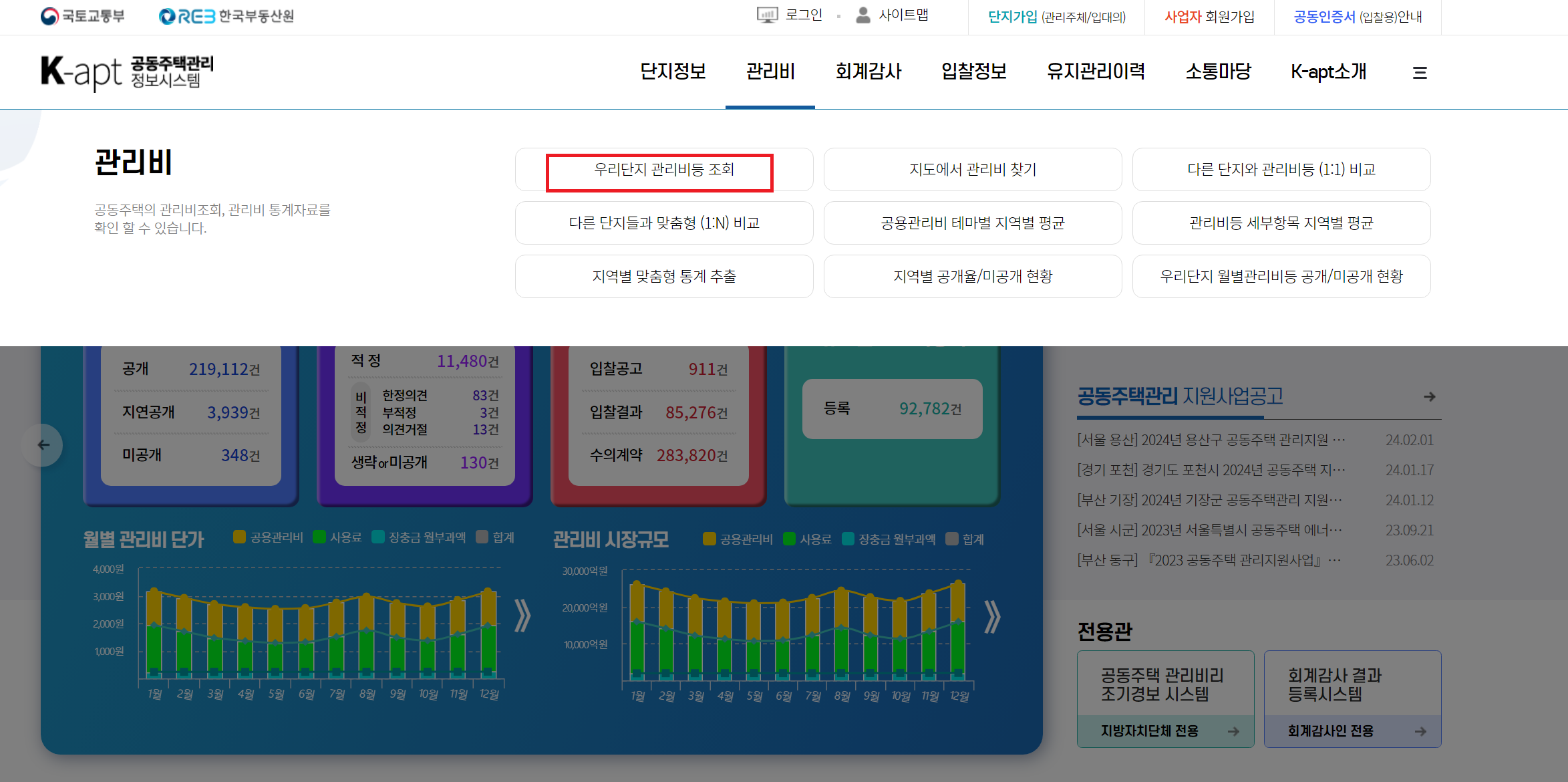 우리 아파트만 왜 이리 관리비가 많이 나오지? 다른 아파트는??? 확인이 가능하다.