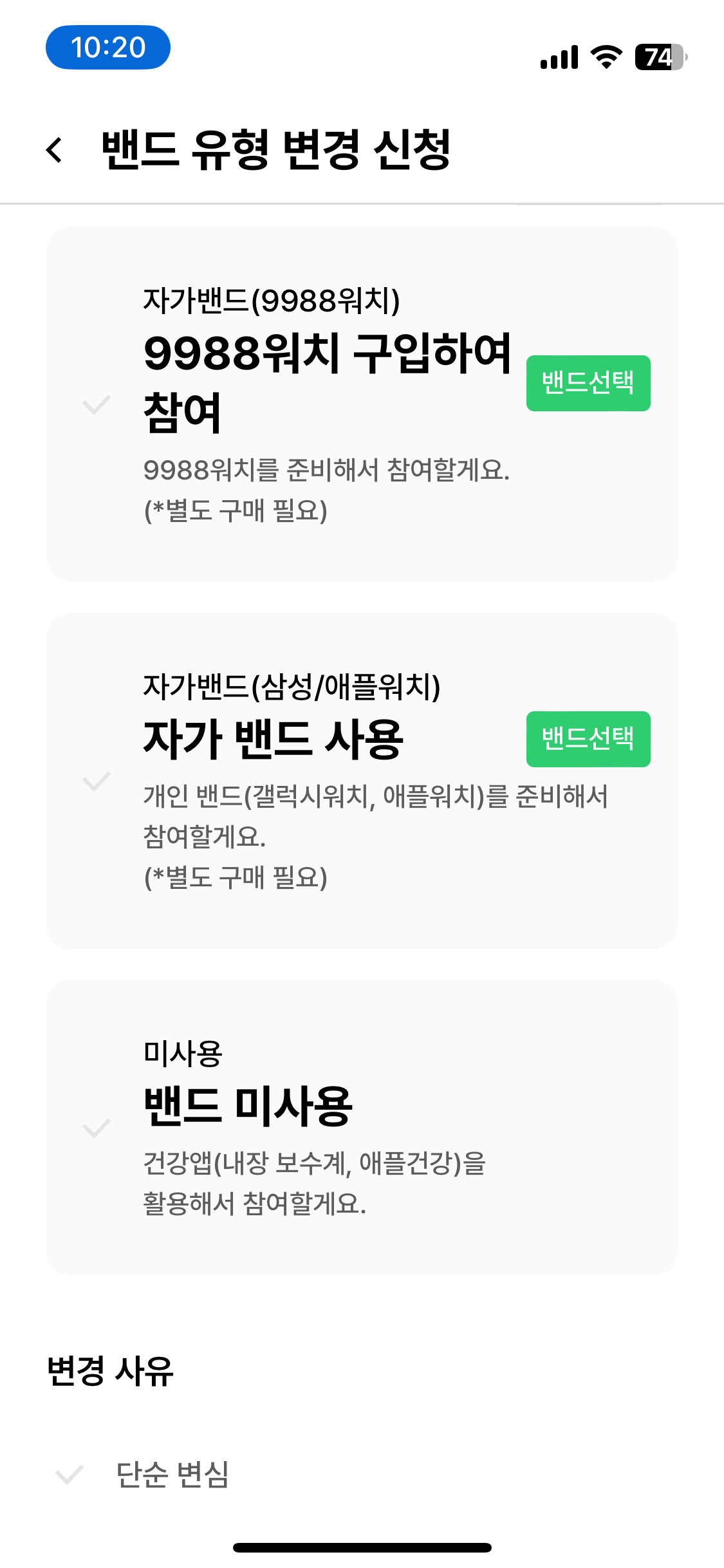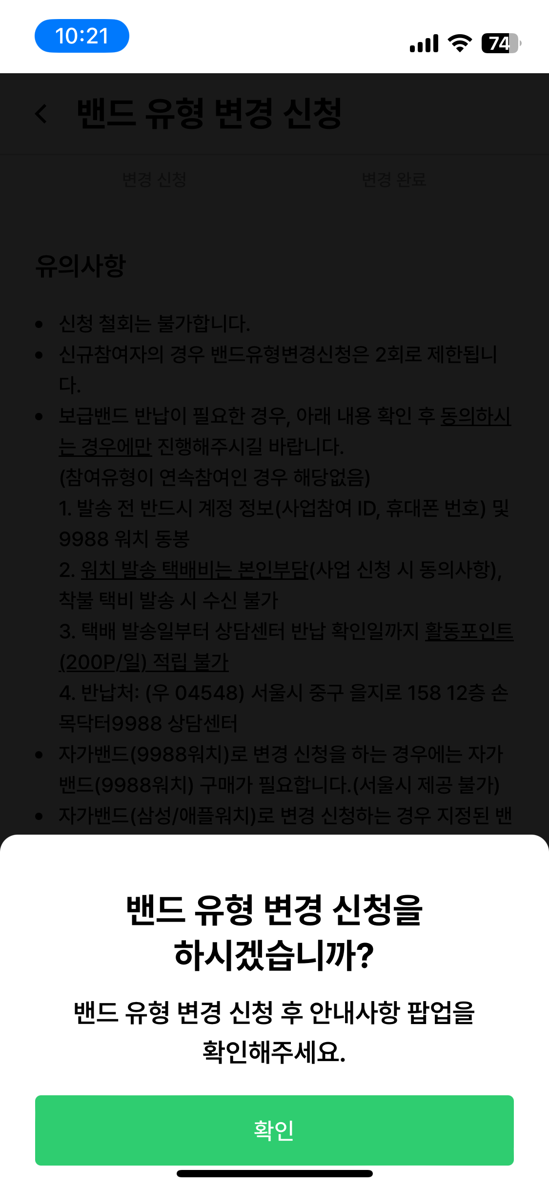 가입할때 휴대폰만으로 신청해서 밴드 유형 변경 신청을 해야 한다.