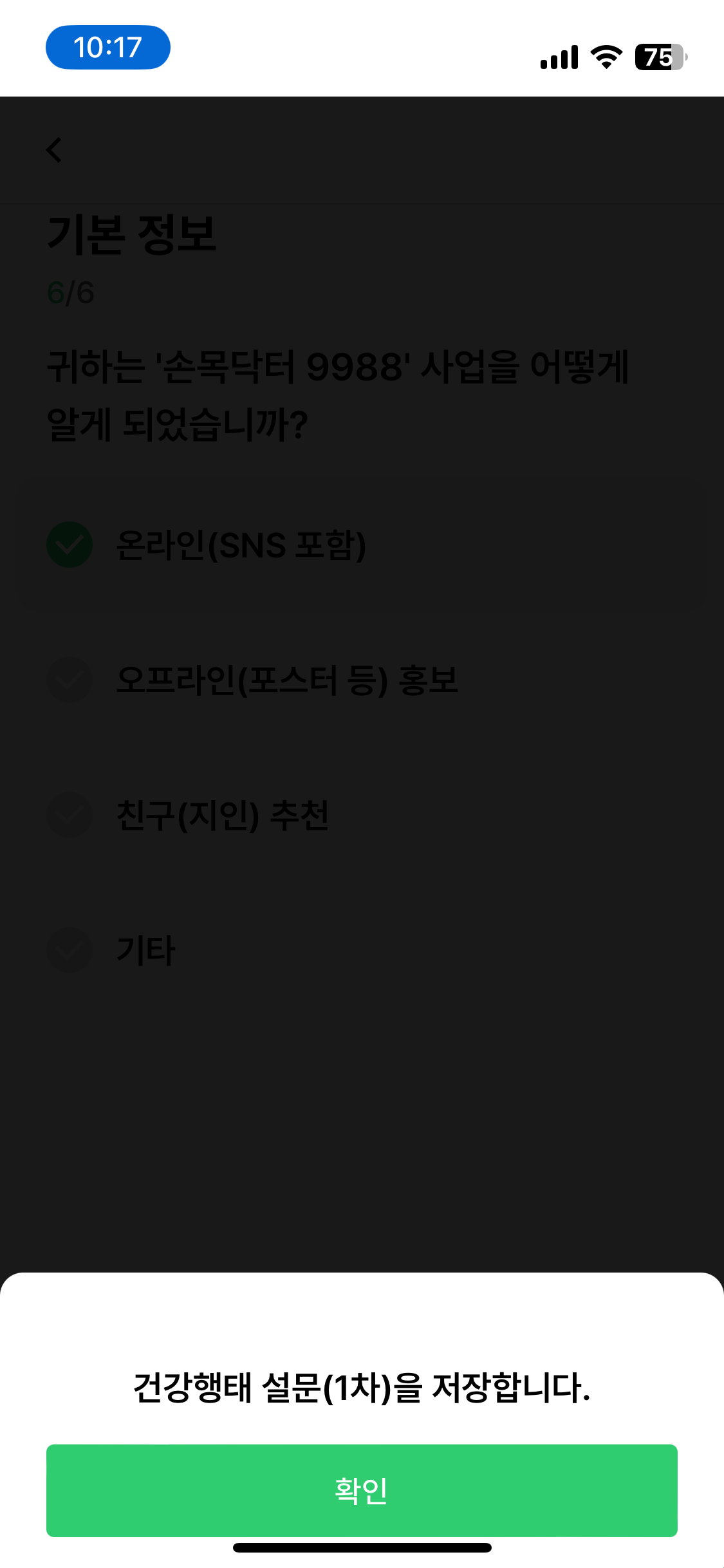 질문에 답변 하다보면 설문(1차)가 끝난다.