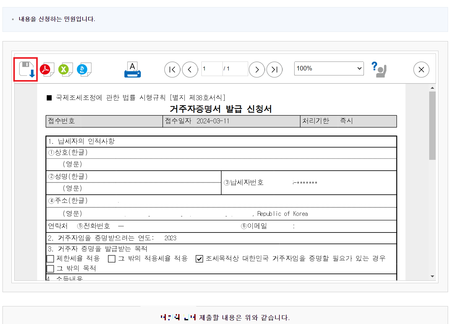 마지막으로 조세목정상 대한민국 거주자임을 증명할 필요가 있는 경우를 체크 해주자.