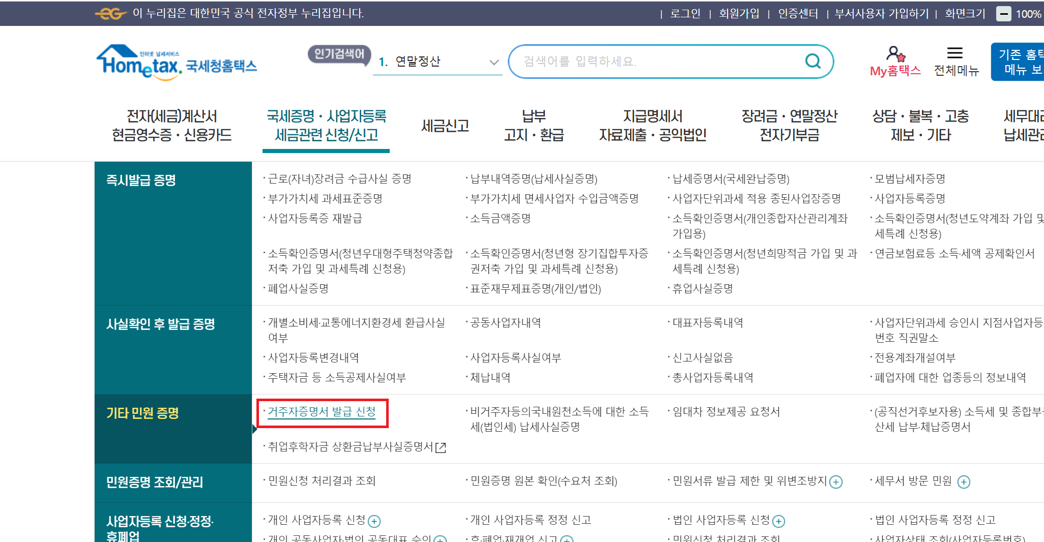 가서 로그인을 하고 거주자증명서 발급 신청을 눌러보자.