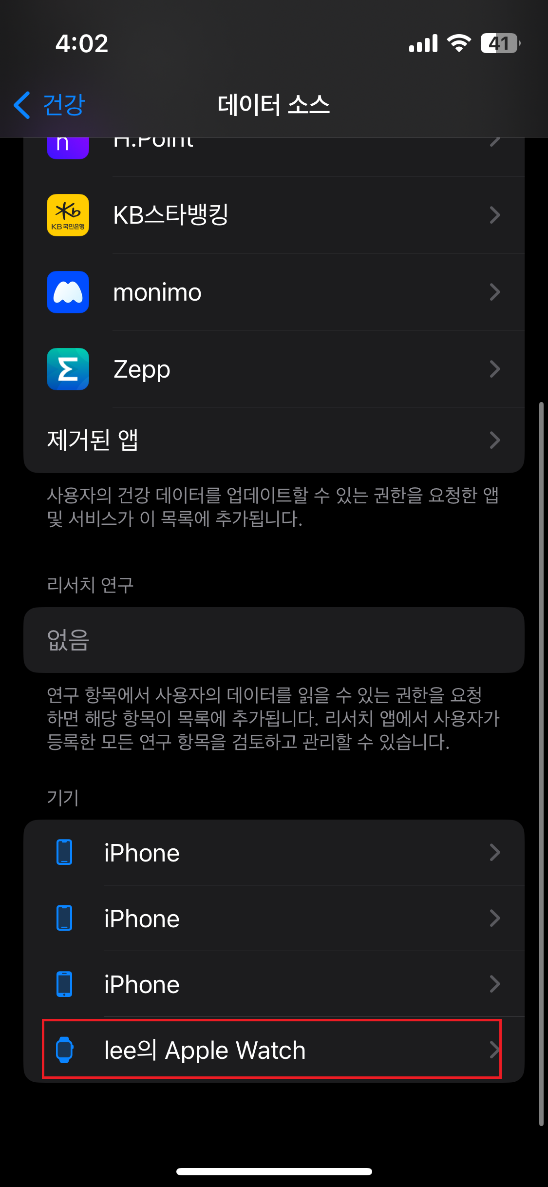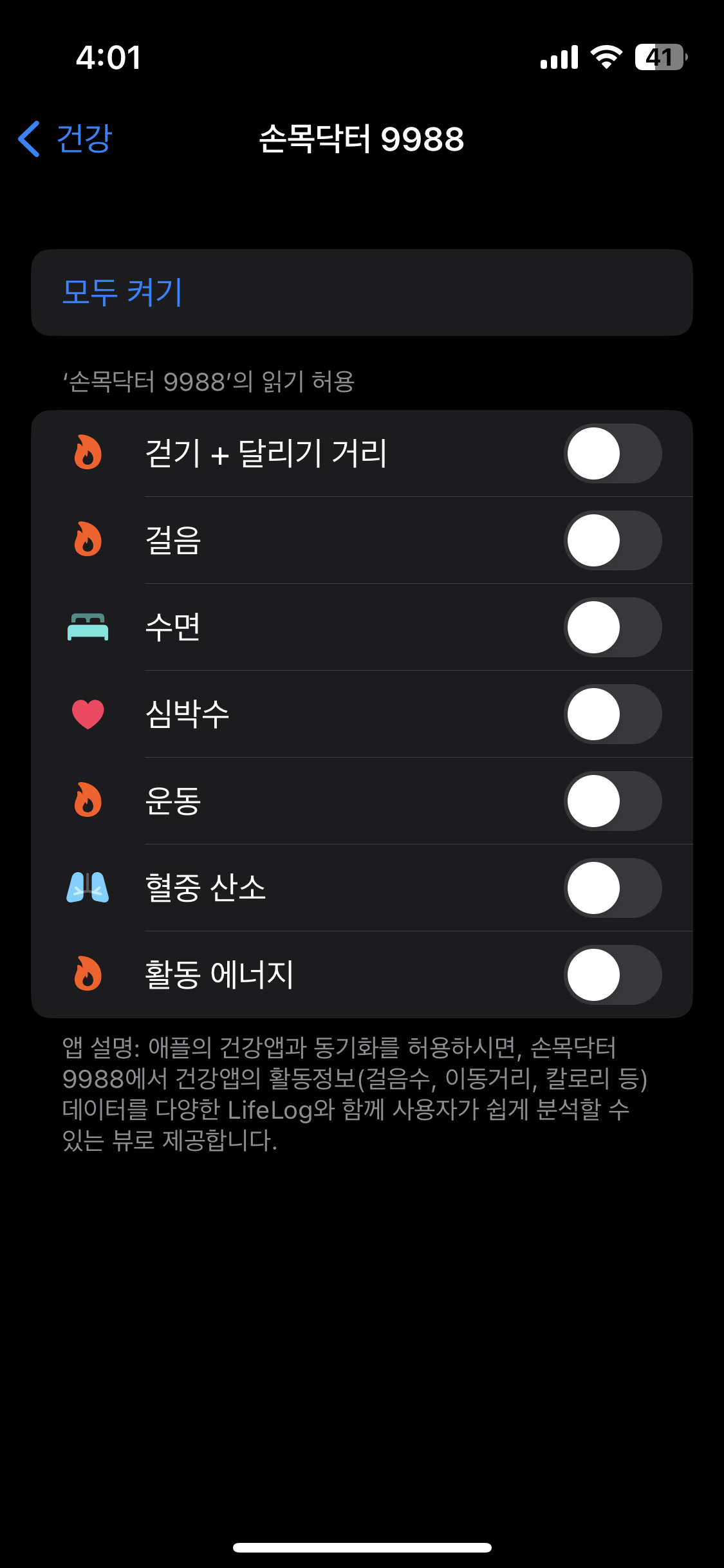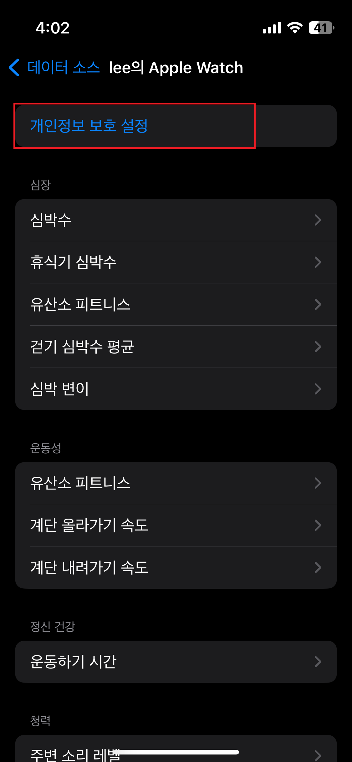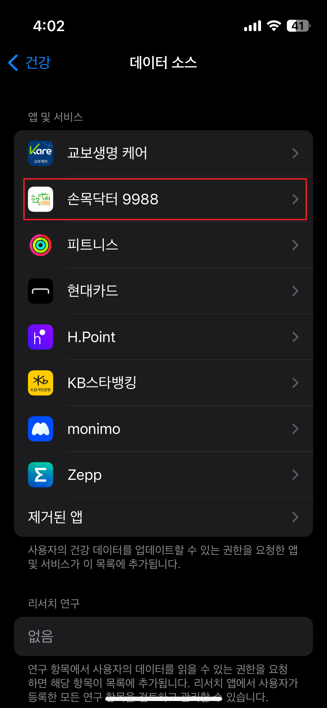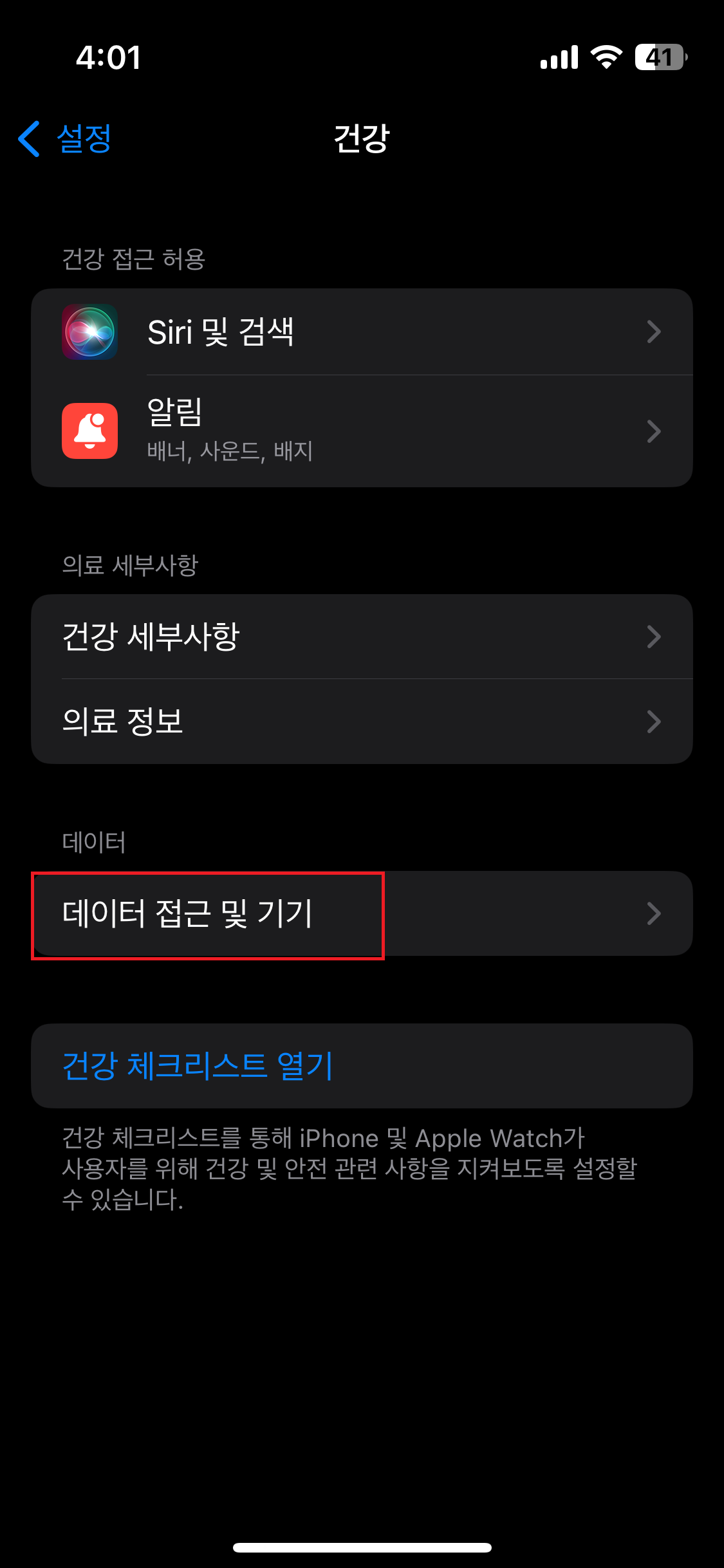 설정에 건강으로 들어가서 데이터 접근 및기기 들어가서