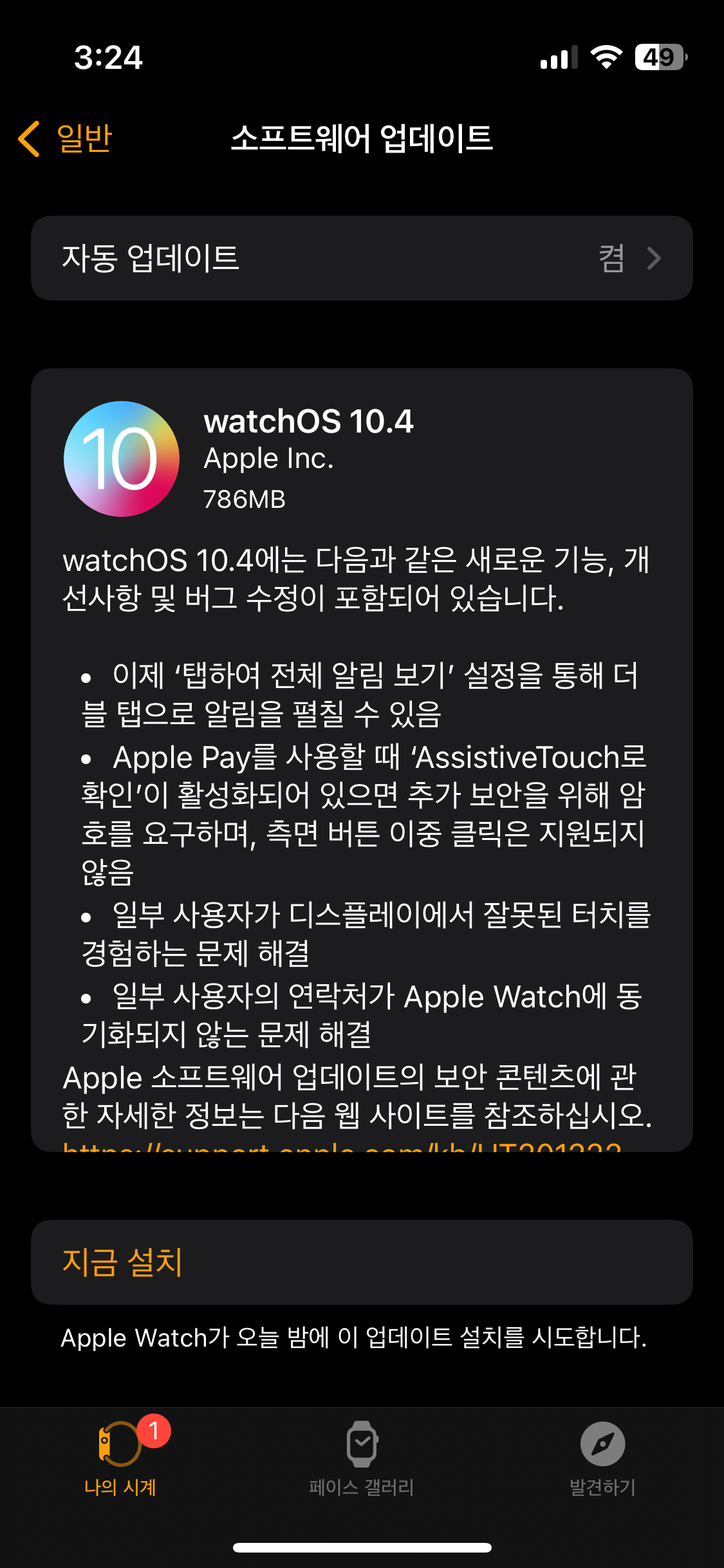 아이폰 애플워치 최신 버전으로 업그레이드 하기 역시 안된다.