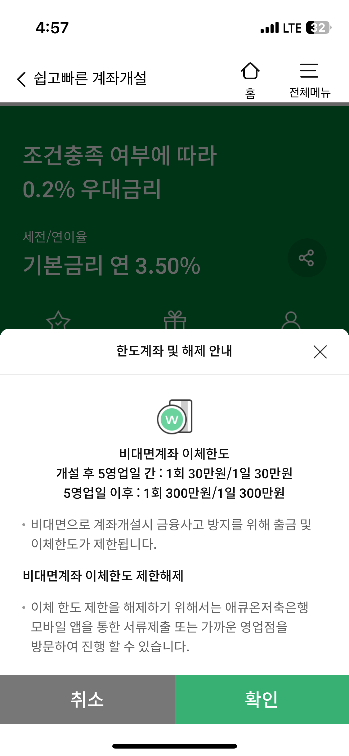 우대금리 까지 적용하려면 조건이 있다 원하면 가입을 하고 조건을 맞추면 된다. 난 귀찮아서 그냥 기본3.5만으로 가입을 진행했다.