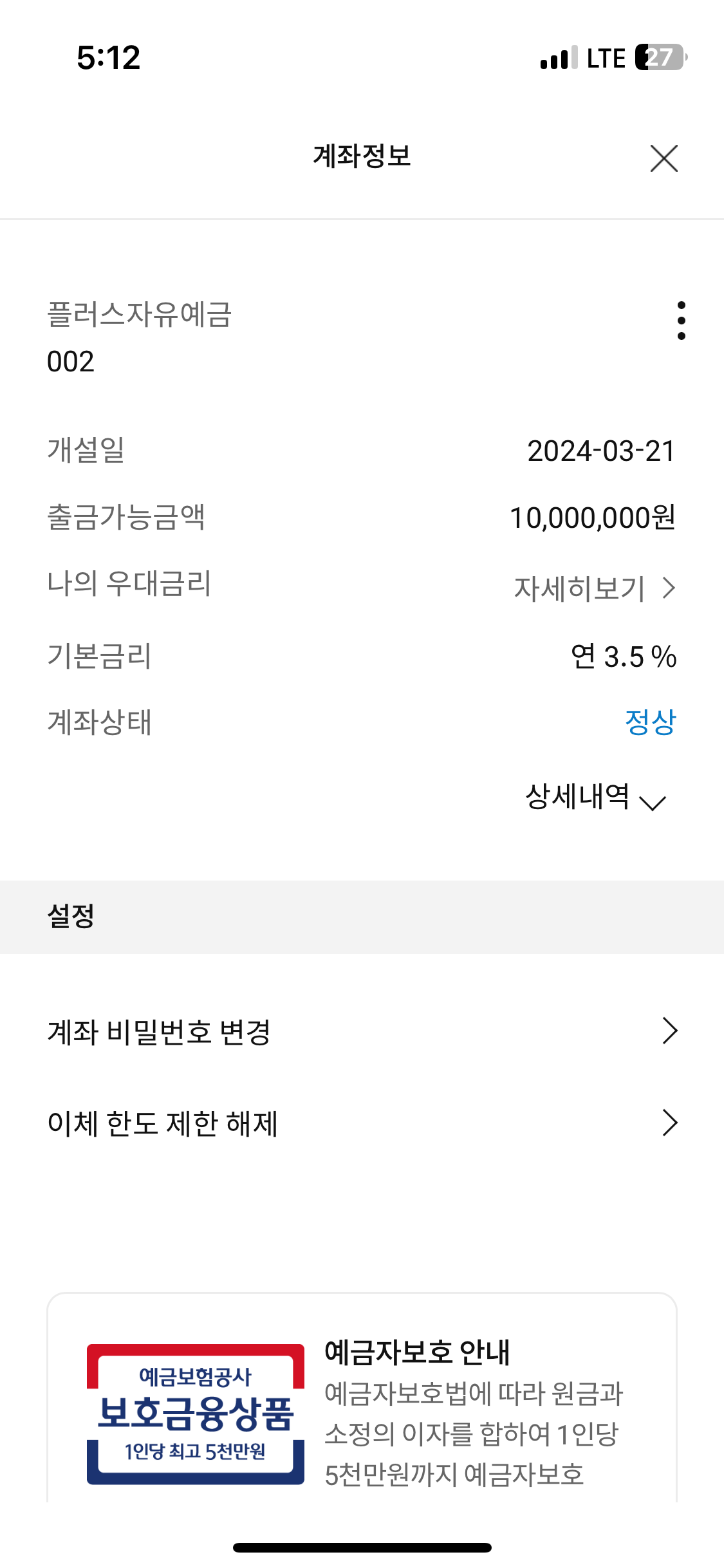당연한거지만 예금자보호 5천만원까지 가능하다.