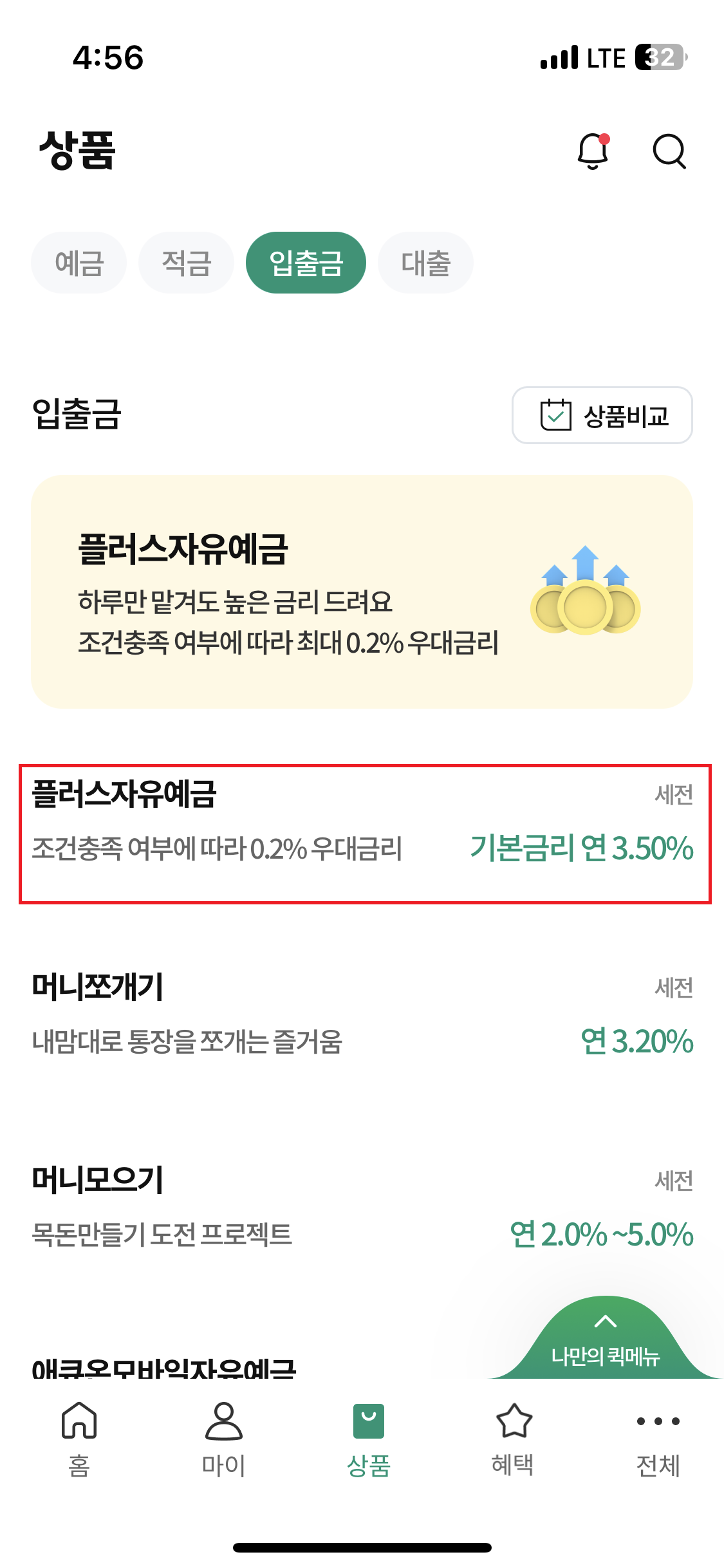 플러스자유예금 3.5가 있다 심지어 우대금리 적용까지하면 3.7까지 나온다.