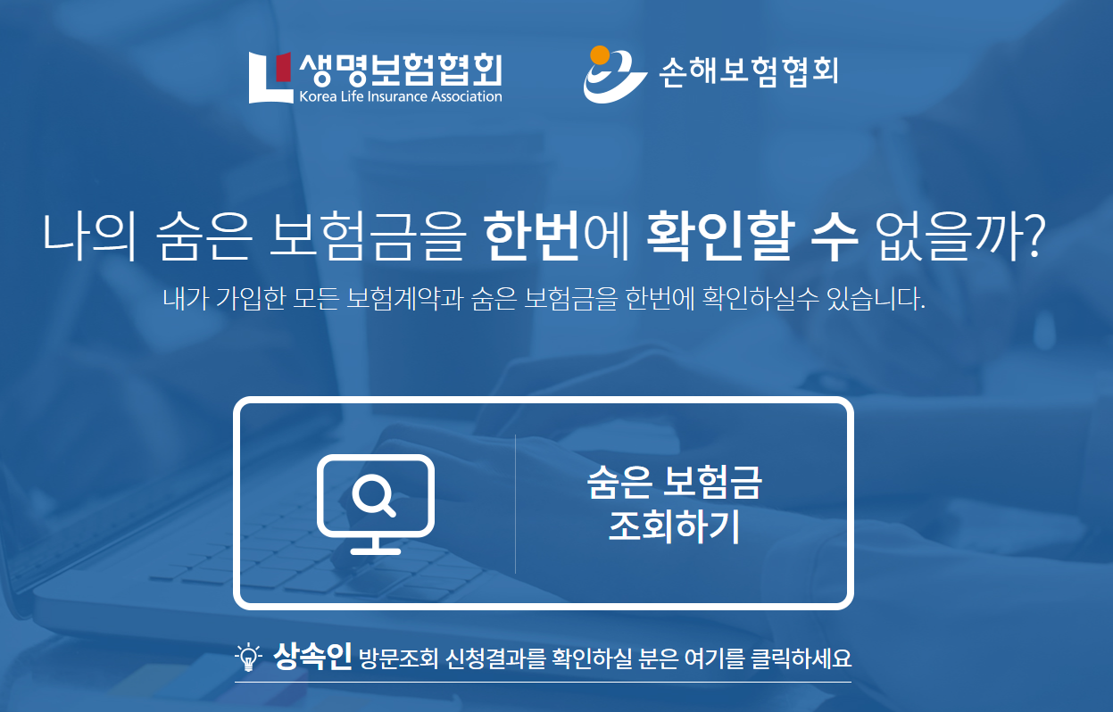 나의 숨은 보험금을 한번에 확인할 수 없을까? 내가 가입한 모든 보험계약과 숨은 보험금을 한번에 확인하실수 있습니다. 숨은 보험금조회하기 상속인 방문조회 신청결과를 확인하실 분은 여기