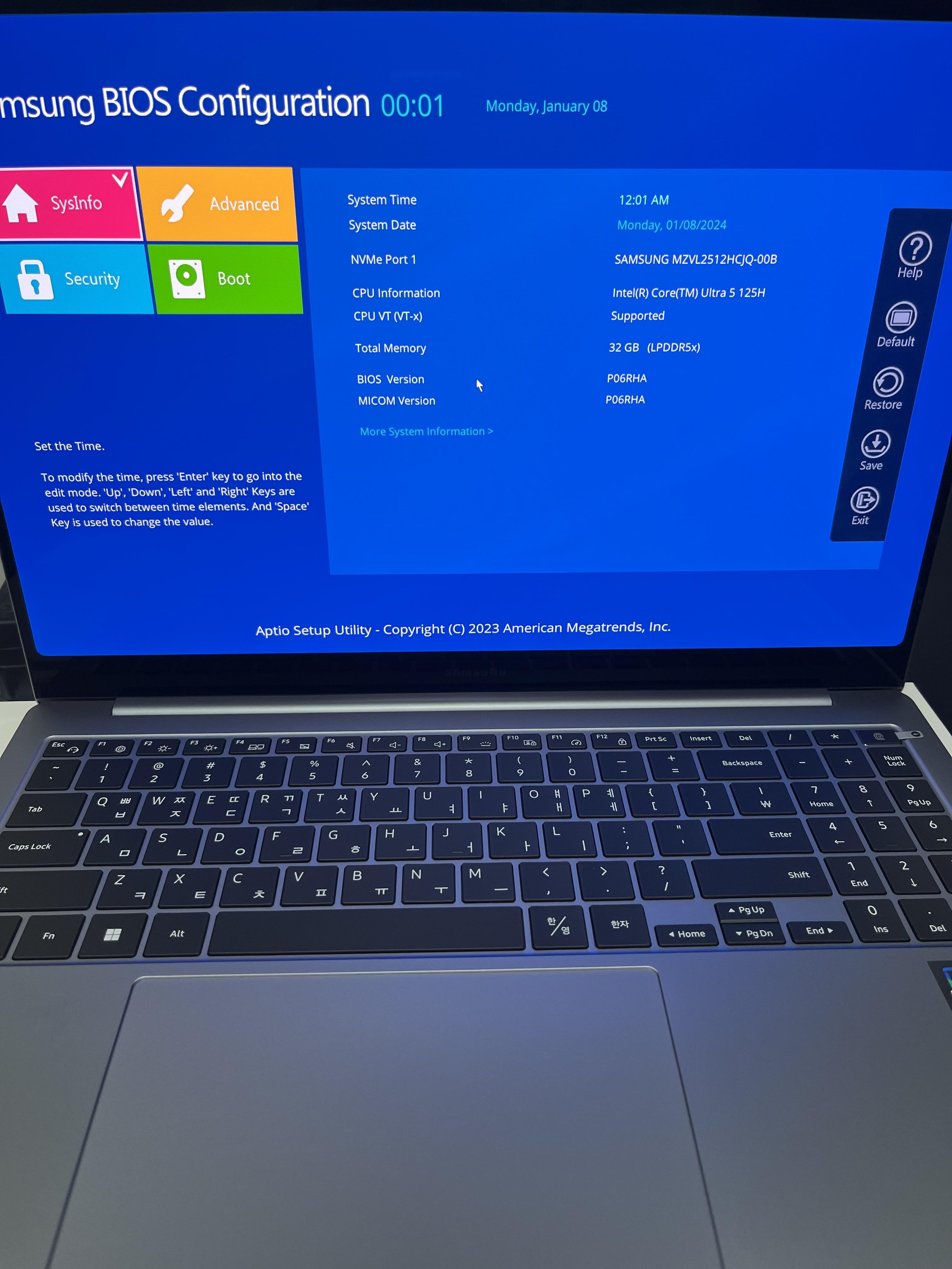 CMOS 에 들어가보면 구매한 모델 스펙이 적혀 있다.