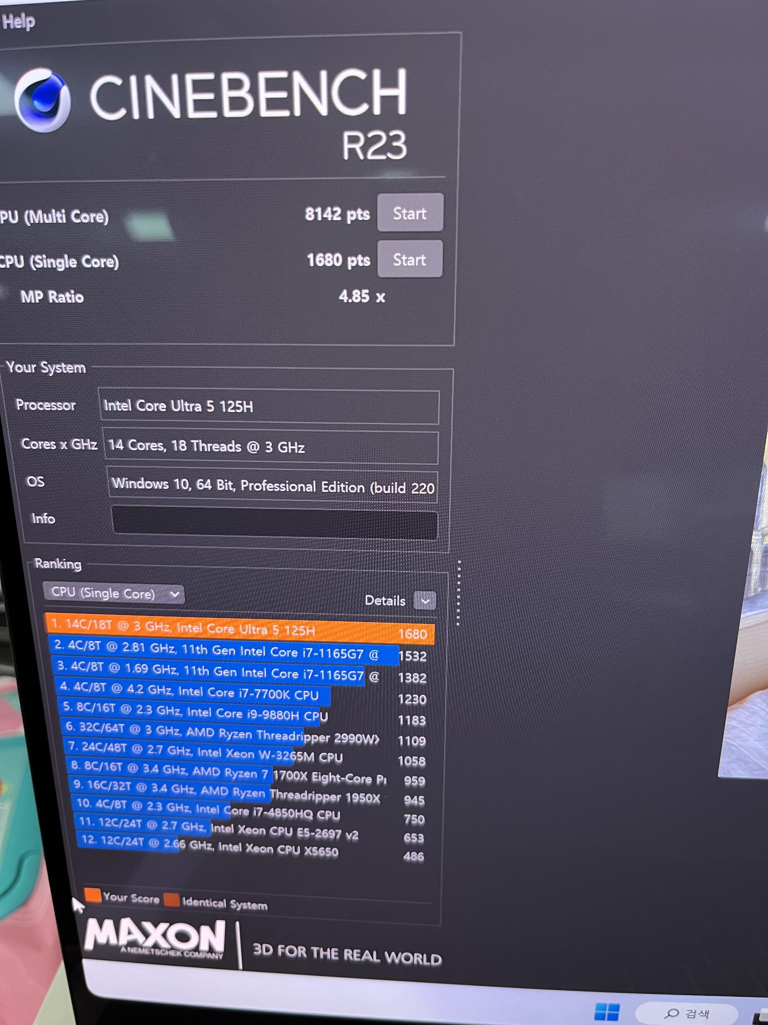 간단하게 시네벤치 돌려보고 사용 후기를 마무리 한다.