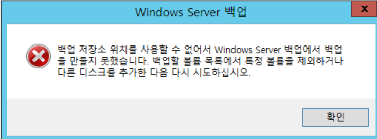 하드 1개만 장착되어 있는 상태라는 위와 같이 에러가 발생을 한다. USB 하드나 네트워크로 백업을 진행 해야 한다.
